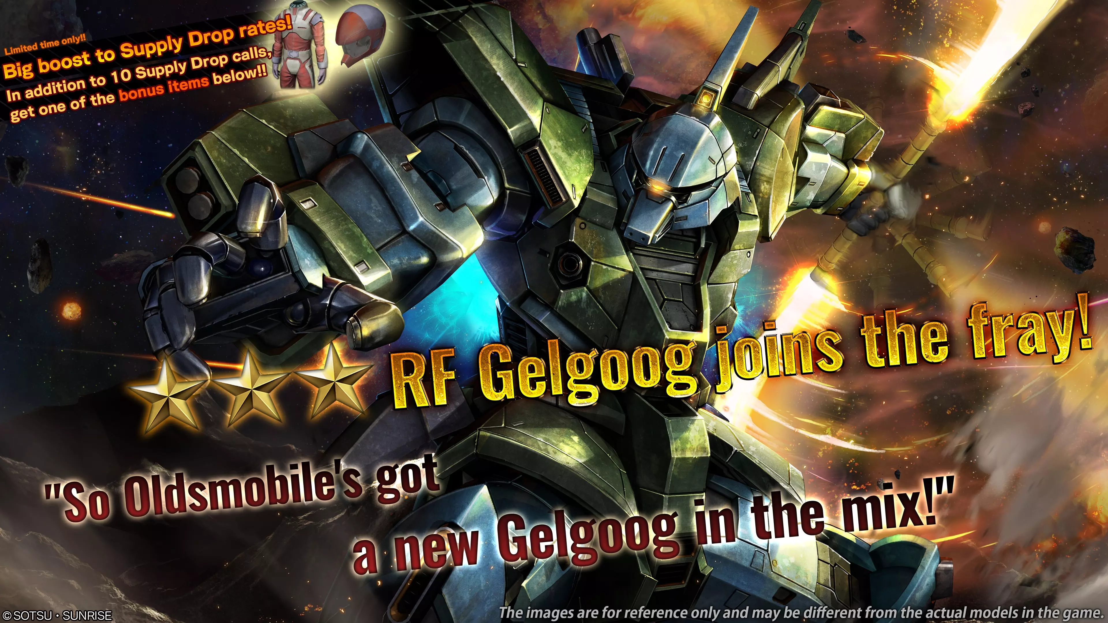 ■活动时间 [太平洋夏令时] 2025年6月19日 01:00 - 2025年6月25日 21:30(预计) [欧洲中部夏令时] 2025年6月19日 10:00 - 2025年6月26日 06:30(预计) ■新增内容 ■机体 ・★★★ RF 吉翁号 LV1(支援型机体,可用于地面/宇宙,成本:650) ※上述MS为月度MS加成机体。 ■机体特点 ・成本650的支援型机体。 ・由总部位于火星的吉翁派系——奥尔兹马比军(OM)大量部署的高性能重型MS。 ・这款OM顶级MS拥有超越第二次新吉翁战争中现役主力MS的卓越性能,同时也是一年战争中使用的吉翁号的升级版。・主要配备光束步枪、光束发射器和臂部导弹。此外,还携带可展开为单刃或双刃武器的光束军刀,具备足以应对中近距离战斗的性能。 ・虽然通过与RF Dom共享部件来控制成本,但造价仍然高昂,因此优先配发给王牌飞行员和高级指挥官。 ・可在地面和宇宙两种环境下部署。 ※本视频可能与实际产品存在差异。 ※请务必查看活动日程,以免错过任何内容。■十连补给额外奖励:专属驾驶员物品! 从[太平洋时间]2025年6月19日01:00/[中欧夏令时间]2025年6月19日10:00开始, 进行十连补给可额外获得1个随机专属驾驶员物品。