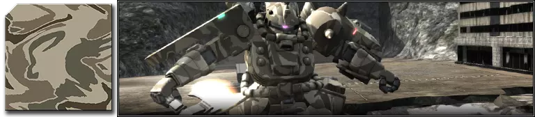 ■机动战士特点 ・本机是以一年战争时期开发的沙漠战用机体【沙漠扎古】为基础的本土化作战机动战士。战后,旧吉翁公国残党对其进行了改造并投入持续作战。 ・本机经过现代化改造,包括发电机升级,使其能够装备【吉翁号光束步枪】作为主武器。 ・仅可在地面部署。 ■涂装样式 ・波纹迷彩03