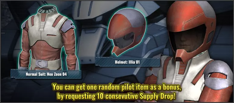 ■活动时间 [太平洋夏令时] 2025年6月19日 01:00 - 2025年6月25日 21:30(预计) [欧洲中部夏令时] 2025年6月19日 10:00 - 2025年6月26日 06:30(预计) ■附带奖励物品的补给箱 普通10连补给箱 ■奖励物品内容(随机获得以下2件物品中的1件) ■服装 普通套装:新吉翁04 ■配饰 头盔:伊利亚01 ※活动期间进行10连补给箱抽取,将额外获得第11个补给箱,并得到1件额外物品。 ※单次补给箱不享受此福利。即使连续进行10次单次补给箱抽取,也不会获得奖励物品。■其他材料 ■机体 ・★★★★ 自由高达 LV2(泛用型机体,陆战/宇宙战适用,cost:750) ・★★★ engage zero yonfavin LV2(泛用型机体,陆战/宇宙战适用,cost:650) ※所有★★★及★★★★机体均可参与月度MS Bonus Unit活动。