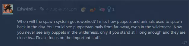 正如我们之前提到的,夏季已经到来,不少人正在享受他们应得的假期,所以请大家谅解,本次开发者更新的内容会相对精简一些。 程序团队主要在进行漏洞修复,并将临时摩托车车轮加入游戏,确保其能交由QA团队进行测试。 关卡设计师仍在专注于漏洞修复工作。 动画师们则在制作新的预告片,同时为“脸滚粉碎者”和“军用铲”制作新的动画。 硬表面团队正在全力打造新的武器模型,而软表面团队则在制作新的服装模型和新的NPC模型。音效团队正在为将出现在克尔什科工厂周边区域的NPC制作音频,并持续录制新的脚步声。此外,游戏设计师们正在调整新道具的相关内容,同时准备这些即将加入游戏的新道具的所有说明文字和描述。 接下来是下一部分:上周大家的反馈。