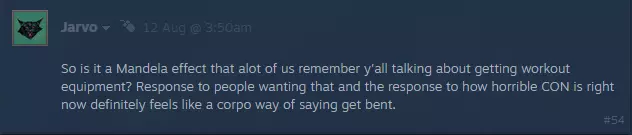 我绝不会对社区提出的要求置之不理——无论是比喻意义上还是字面意义上。关于CON,请阅读上一个问题的答案。这里不存在曼德拉效应。我们确实有过实现此类功能的想法,但当时没有时间去开发健身房以及其他能提升角色属性的内容。既然1.0版本已经发布,我们相信会在后续的某个更新中添加这些内容。