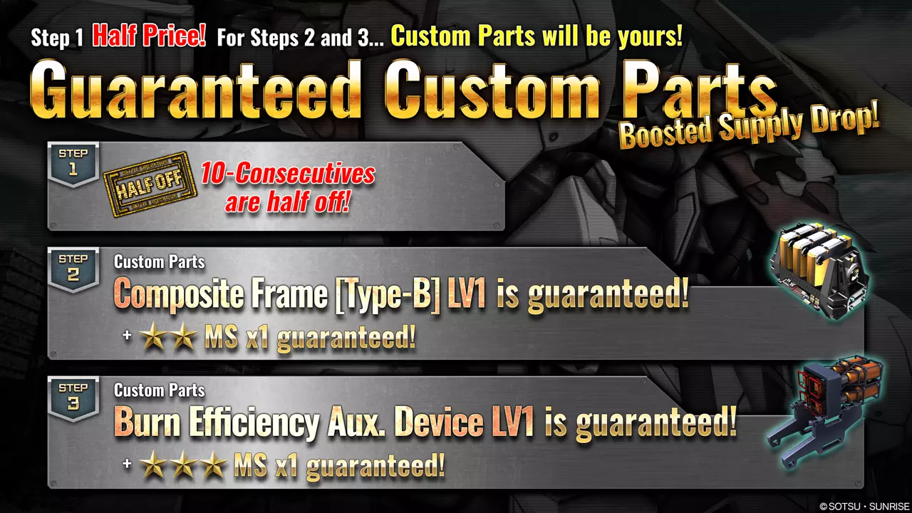 ■活动时间 第一天: [太平洋时间] 2026年3月2日 03:30 – 2026年3月2日 11:59(预计) [中欧时间] 2026年3月2日 12:30 – 2026年3月2日 20:59(预计) 第二天: [太平洋时间] 2026年3月2日 12:00 – 2026年3月3日 11:59(预计) [中欧时间] 2026年3月2日 21:00 – 2026年3月3日 20:59(预计) 第三天: [太平洋时间] 2026年3月3日 12:00 – 2026年3月4日 11:59(预计) [中欧时间] 2026年3月3日 21:00 – 2026年3月4日 20:59(预计) ■活动内容 活动期间,驾驶员每天可免费进行1次补给,必定获得以下列表中的1台随机4★机动战士(MS)。 ■机动战士(MS)列表 4★ 阿特拉斯高达[TB] LV2(泛用型机体,仅地面使用,cost:650)