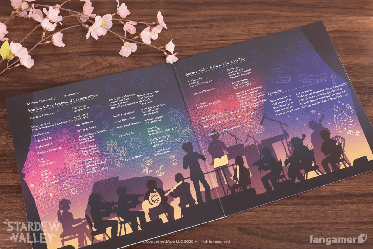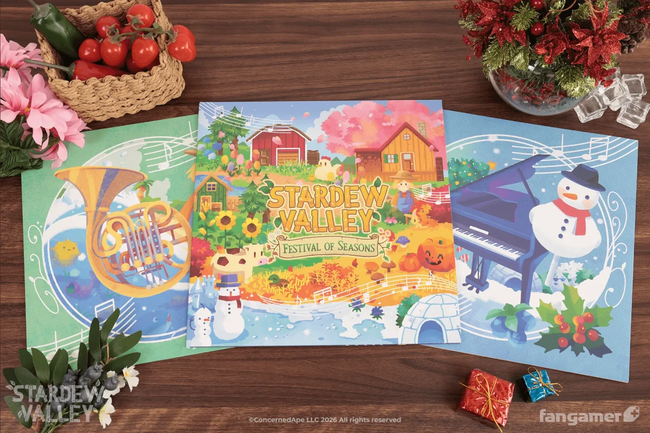 Fangamer ✖ 《星露谷物语》 近日,Fangamer官方公布星露谷物语音乐会黑胶(Stardew Valley: Festival of Seasons Vinyl)(2LP彩胶)信息。 目前该产品已开启预订。 Fangamer官网售价:39美元(约合267人民币) 预计2026年5月发售