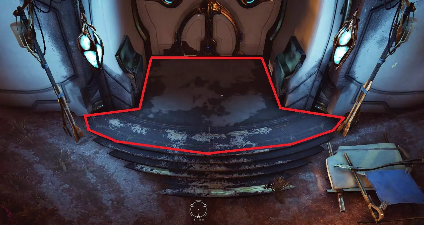 The only two mods really needed here are Energy Amplifier for a longer Blink range and System Reroute for a higher casting efficiency. The survivability mods are only usefull whenever you're the Luresitter of the team. Flightspeed mods are not needed since you'll mostly move around via the Blink ability. A mod like Auxiliary Power can increase the energy pool you can work with as DPS or Luresitter, this mostly comes in handy if the Eidolon spawns at a point very far away from the Shrine. The Void-Strike Strategie There are currently two differnt strategies on how the team uses their VS charges on a fresh set, by fresh i mean no precharge. Both starts are vastly different from eachother. I will go over the inferior "Turns"-Strat first. This strategie implies that Harrow and Trinity charge their 8-VS shots during the Teralyst and Gantulyst fight, leaving mostly Volt alone on the Teralyst shields. This strategie is still very far spread and it loses a lot of time during the Teralyst fight. However, with near perfect execution, this strat can also achive the required sub 10 minutes times you need for a 5x3 night, but keep in mind, a tiny mistake can cost you a lot of time and "kill" the 5x3 night for you and your team. However, this strat usually is used for the first set of a night because most teams enter before the night starts, this strategy starts working perfectly after as little as ~7 minutes of precharing to one-shot the Teralyst shields. Let's move on to the "all shoot"-strategy. This strategy is simpler, faster and more reliable and it can yield low 9-minute times without much practice. The main difference between the two strats is when and how much everyone charges his VS-Shots. With this strategy all three Voidstrikers are charging 8 new shots during each healing phase and using 1 or 2 shots for every shield for the next Eidolon-Fight. Because 3 people are charing and using a shot with at least 7-8x multipliers the actual damage output is equal to a single VS-user with a 21-24x charge. In the best case, Harrow can get to about 15x with the "turns" strat. So we already have more then 25% more damage than with the other strat for every shield. Also, the team has 3 times as many chances for a critical hit with the 3 different people shooting. In the end you have 8 shots for 6 shields, those shots should be used as follows: first 2 shots are burnt for the first shields since it's twice as strong. then you have 1 shot for the other 5 shields before the Eidolon enters the healing phase. If everyone does his/her job correctly everyone should have 1 extra shot, this shot can be used incase the team is unlucky with crits and doesn't oneshot a shield. Using Virtuos Shadow can increase your CC and almost ensures the Shield-"one-shot". Procing the arcane can be done via voiddashing against the eidolons head while he stands up. Let's talk about the time difference and the breaking point of this strategy The biggest and only difference in times comes from Harrow and Volt taking down the Teralyst's shields together, basically cutting that time in half. However, a good Trinity can stay with the team for the first Teralyst shield and gather 5-7 lures after that and cutting the time by about 10 seconds for each Set. Sadly this strat has two breaking points inside the team, one being much bigger than the other. The first and major breaking point is people overestimating their remaining VS-charges after the Eidolon fights and wasting time outside of the void mode and thus spending downtime not charging. The second breaking point is a very minor one if you look at breaking the shields, but it has a bigger impact on the time at a different spot. This breaking point is Trinity arriving late during the Teralyst healing phase, this means time is wasted not charging VS and it bares the risk of uncharged lures and thus delaying the Teralyst capture. I will talk about this flaw in the dedicated Trinity section. Your job as: VS-Operator In the next few section I'll go over the different jobs of each role and I will strart with the most important thing. The VS-Operators. The most important part you have to do before the team even engages the Eidolons is stay inside the marked area here: