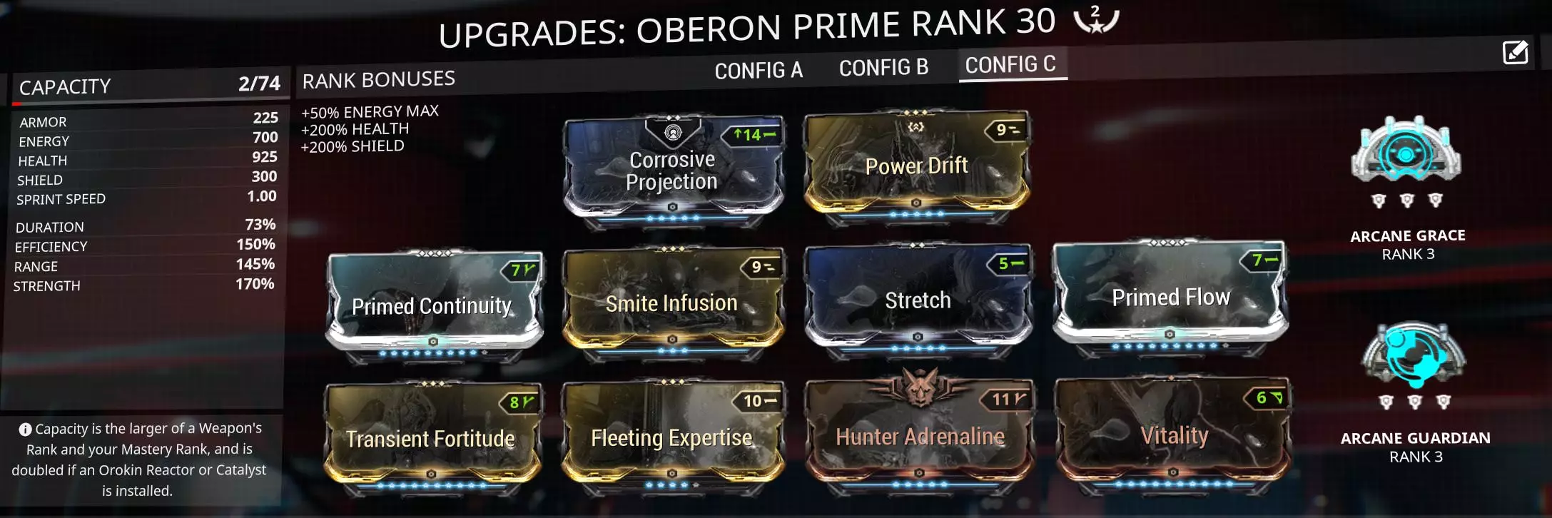 力量首次成为更重要的属性,你需要至少150%的力量强度才能将祝福技能效果最大化,之后我建议堆到175%的效率以便随时重新施放,同时保证适当的持续时间。范围属性可以完全忽略,因为祝福技能使用的是亲和范围。 奥伯龙/奥伯龙Prime: