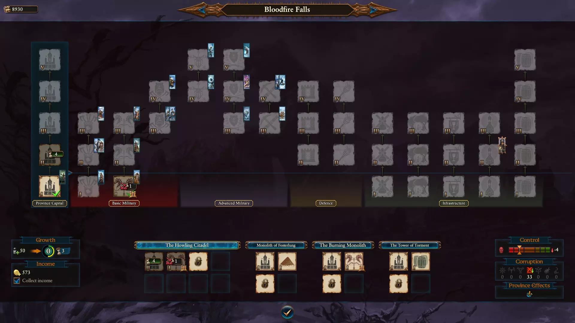 敌人基本都是所有混沌阵营的势力:诺斯卡、混沌、单一神等。附近的混沌矮人也是个问题,需要警惕。 种族与派系机制: 机制方面,他们拥有“虔诚值”这一独特货币,可用于“祈祷仪式”,其作用与“仪式”非常相似:你可以消耗虔诚值进行以下祈祷仪式之一: 1 - 提升角色等级时获得信徒;增加增长和补充速率; 2 - 占领 settlements 时获得信徒;对敌人造成损耗并获得一项军队能力; 3 - 建造建筑时获得信徒;增加收入; 4 - 战斗胜利时获得信徒;获得一项军队能力,提升全体近战攻击; 获得的信徒越多,你在战役中获得的增益就越好。与其他两个派系不同,你不会在种族胜利后自动结盟,但与最终获胜者保持良好关系会有所帮助,这样之后你可以正常与他们结盟(或者将他们作为盟友,取决于你的意愿)。 冰庭机制运行良好,能确保你获得更符合需求的施法者英雄和施法者领主。你可以选择他们的初始特性,这对于多样化且专注的游戏风格来说非常棒。 哥萨克首领能确保你的省份始终产出丰厚收益。每2个省份可以指派一名哥萨克首领,你还可以为他们赋予你想要的必要特性来实现这一点。最后,作为一种独特机制,普拉格、基斯里夫和埃伦格拉德这三座主要城市是你组建军队的核心地点,因此控制它们对于确保中后期游戏的良好统治至关重要,几乎是必需的。这三座城市都拥有大量特殊建筑。作为鲍里斯,主要问题在于如果你在北方过于繁忙,可能没有时间进行入侵,但邦联选项始终是一种可能性。 省份法令和军队姿态: 法令: 控制+4,敌人战役移动范围-20%; 所有建筑收入+5%; 招募成本-10%,本地招募容量+2(!瘟疫传播几率-40%,英雄招募等级+2,腐化值-5,英雄招募成本-25%; 这些都还不错,但要注意缺乏增长和研究,而这两项其实相当有用。 军队姿态: 引导:魔法之风能量储备+15,代价是10%移动速度; 扎营:消耗50%移动速度,可进行补充和全局招募,并免疫损耗; 劫掠:消耗50%移动速度,免疫损耗; 伏击:消耗25%移动速度; 强行军。 都是些常见的姿态,没什么特别的。 《全面战争:战锤3》不朽帝国鲍里斯·厄孙-基斯里夫战役概述、指南及后续思考 建筑、研究: