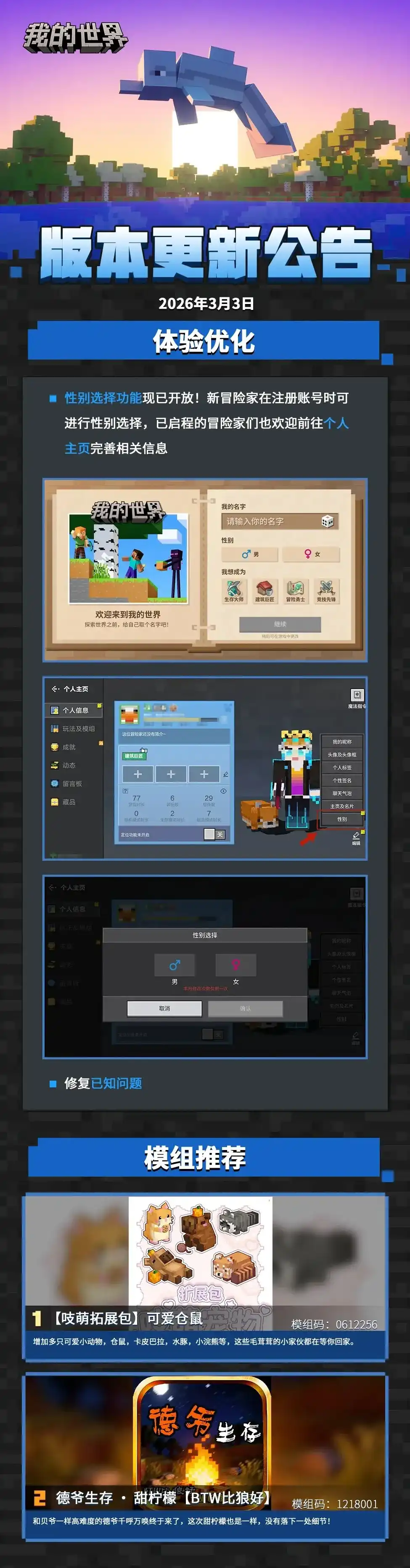 公告 | 个人主页新增设置,模组推荐上新