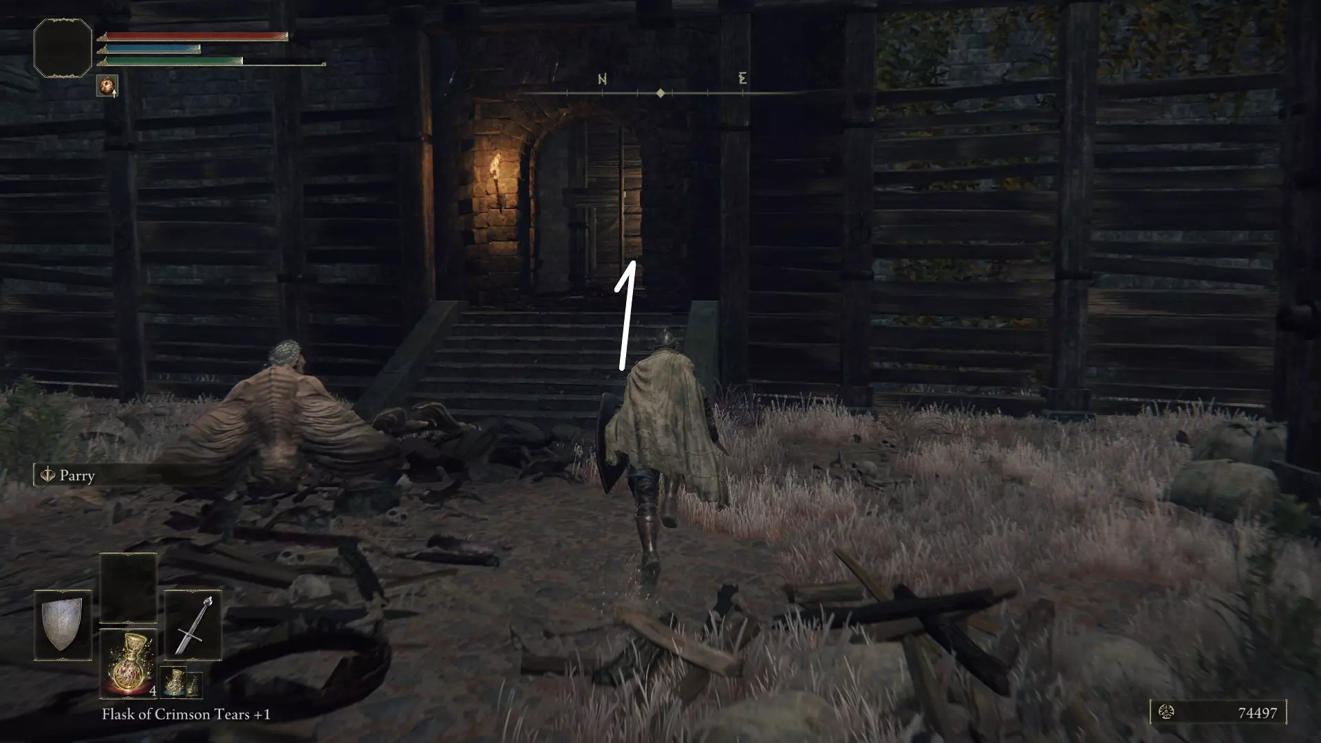 首先从洞穴出来后,前往艾雷教堂,之后再前往城门前方废墟(请怜悯你遇到的葛瑞克士兵)。进入城门前方废墟后坐下,梅琳娜会向你提出邀约,接受的话她会给你一个能召唤坐骑的戒指。拿到戒指后,骑上你的马,沿着道路来到附近的废墟旁获取地图,然后拿到名为链枷的战锤(获取这个物品的原因是它能在敌人身上叠加出血效果,造成高额伤害)。这把战锤需要10点力量和18点敏捷。不过不用担心,之后我们会获得能解决这个问题的物品。从这里直接前往最深处的玛丽卡第三教堂,教堂旁边有一个隐藏传送门,它会将我们传送到野兽神殿。