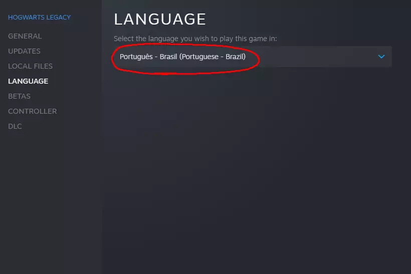 注意:不要删除任何字符,只需替换为其他字符,注意“brazilian”比“schinese”多一个字母,所以该单词后不是4个点,而是3个点。最后,通过Steam进入游戏属性,这次在“语言”中选择“葡萄牙语(巴西)”。