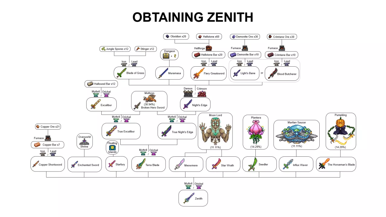 获得天顶剑——这场旅程的巅峰之作,由主剑锻造而成。 打造天顶剑——游戏中最强大的剑。我来分享配方,你们需要付出努力: