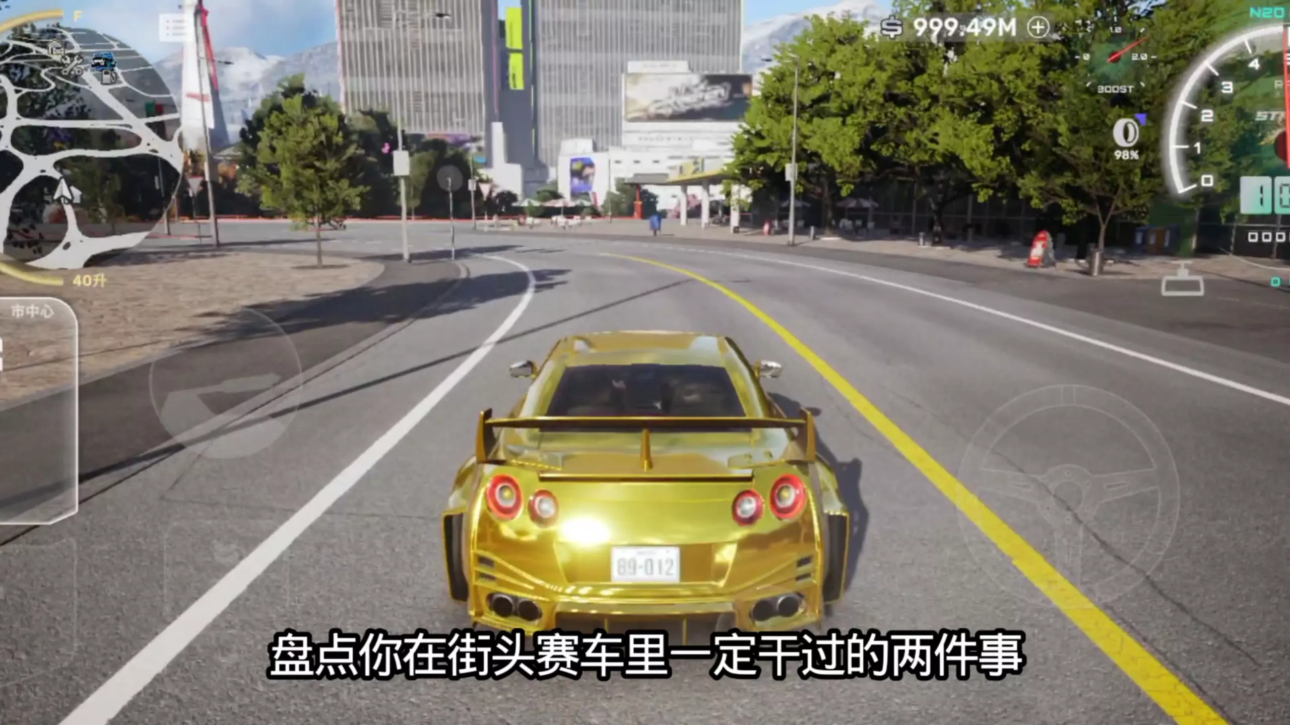 这是一篇《CarX Street》的视频介绍帖,展示了游戏里夜晚的城市场景,有街道、装饰圣诞树、城市建筑群等画面,呈现出该PC端赛车游戏的城市场景风貌。