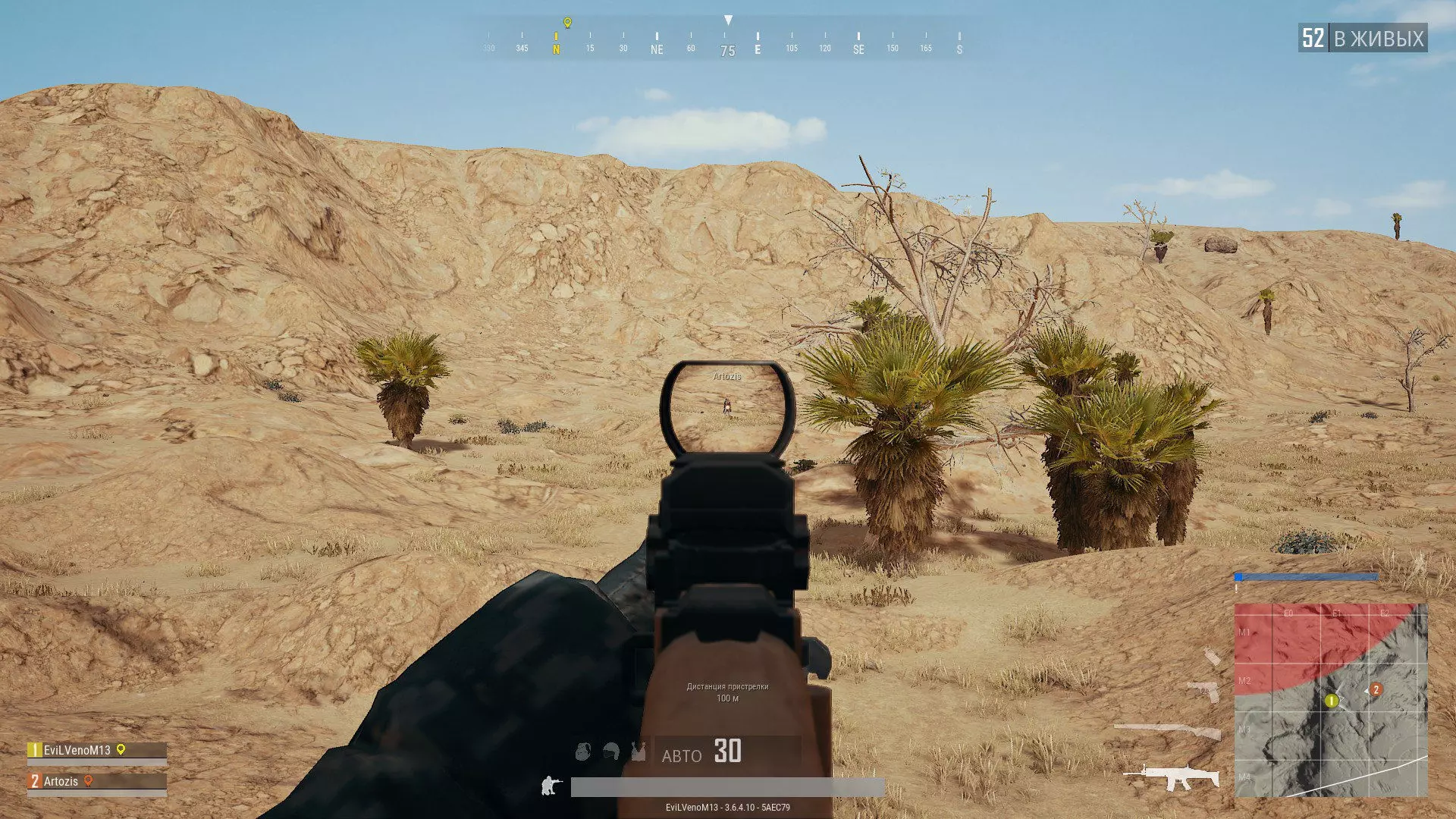 100米×100米的小格子位于1×1千米的方块内。 中远距离 中远距离适用武器:DP-28、SCAR-L、M416、AKM、M16A4、SKS、OTS-14“雷电”、Mini14和AUG。这些武器的有效射程在100至800米之间,精准射程为400米。目标距离越远,就需要越多的提前量,根据武器及其射程的不同,大约每100米需要瞄准目标半个身位。因此,要命中800米外的目标,你需要大约瞄准【4个身位】的提前量。