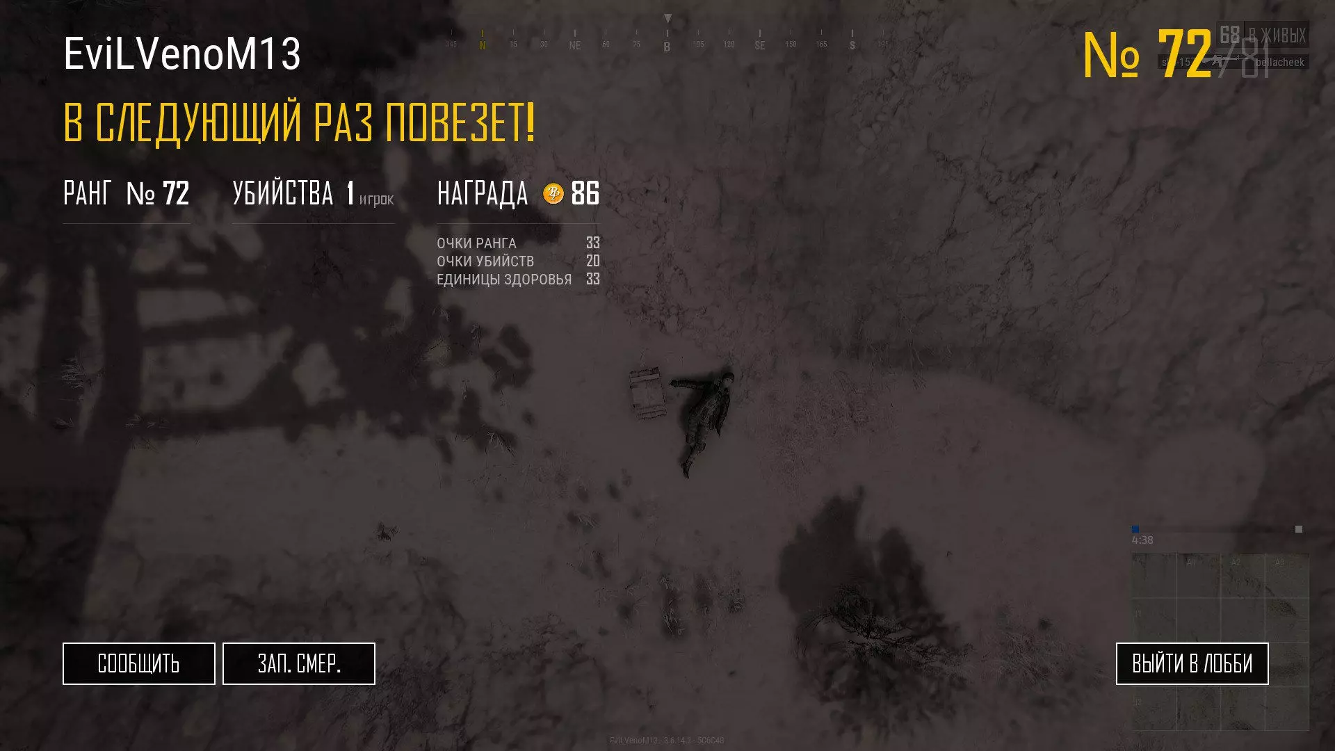 刷BP的错误示例。 大部分获得的BP取决于段位——在比赛中获得第一名的玩家能得到最多的收益,但如果你不想费力气,有一个相当简单的方法可以轻松赚取BP。这个方法对于那些《绝地求生》玩得不好、难以获得晚餐所需的鸡肉的人来说尤其有用。快速获取BP的方法基于击杀不活跃玩家,简单来说,我们就是要刷AFK玩家。 在亚洲和大洋洲服务器,延迟很高,这意味着大约有5-10名玩家会很快掉线,并在飞机上一直处于AFK状态直到被踢出。而且在亚洲服务器上,刷分团队非常普遍,他们不停地进入游戏后就AFK,只为了赚取可怜的20BP。我们一路飞到地图尽头,快速击杀尽可能多的挂机玩家,但要记住,你可能不是唯一这样想占便宜的人。所以,当有一两个和你一样的玩家为了宝贵的BP而追着你跑时,不要感到惊讶。