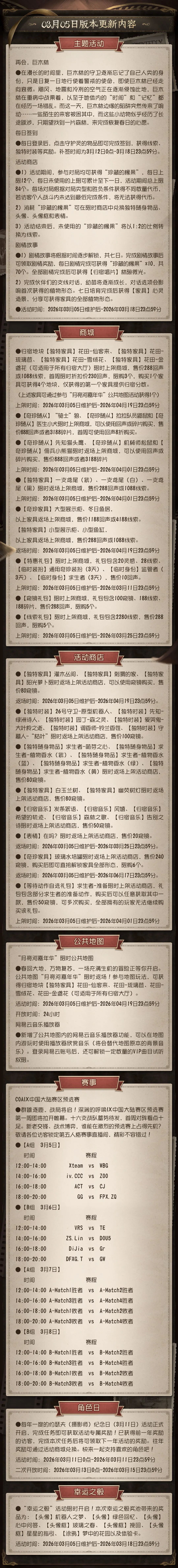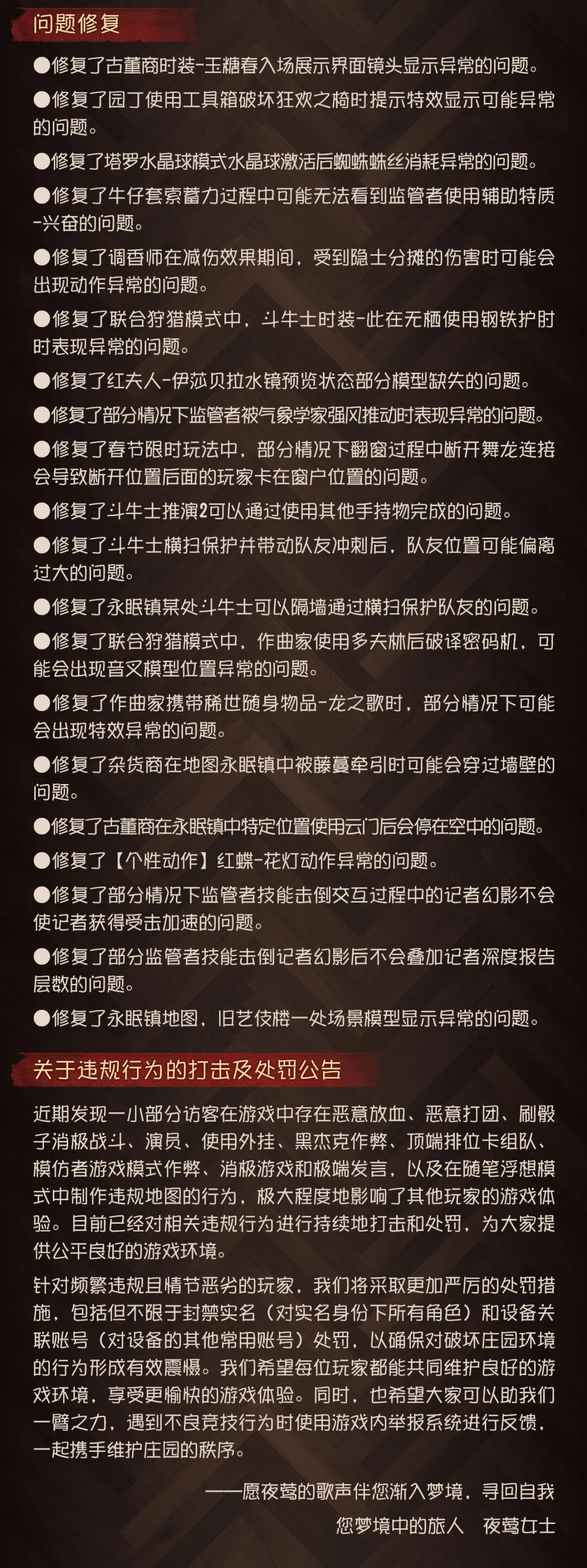 为保证庄园的稳定运行,【第五人格】将于周四上午07:30进行不停服维护。