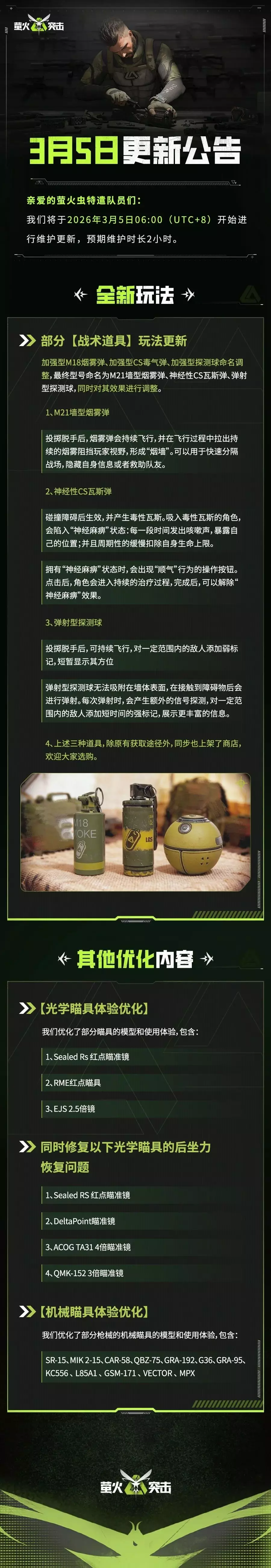 更新公告|加强型M18、探测球、毒气弹玩法更新!瞄具体验优化!