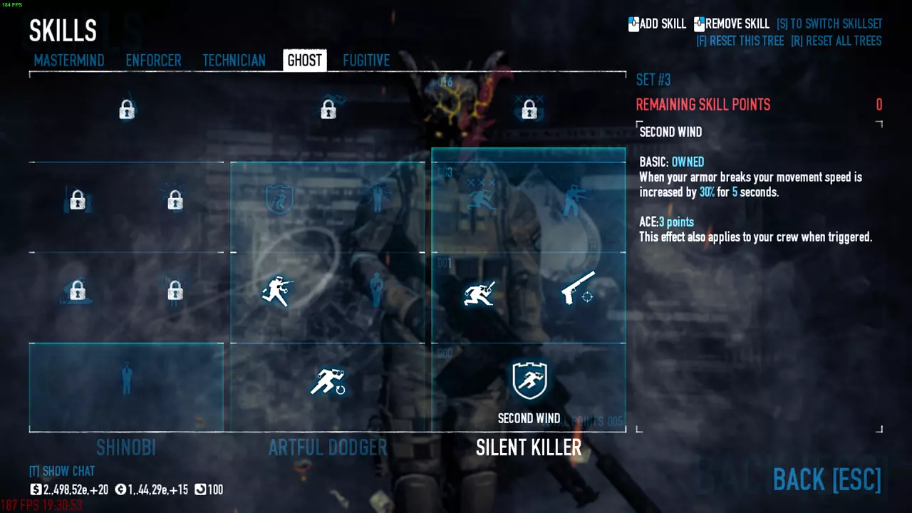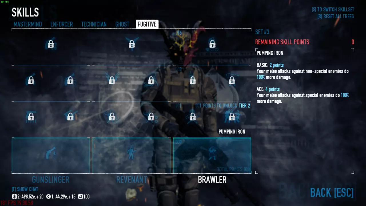你可以自行选择近战武器,但我推荐快速武器,比如蜂鸣刃或武士刀。 技能 单人模式