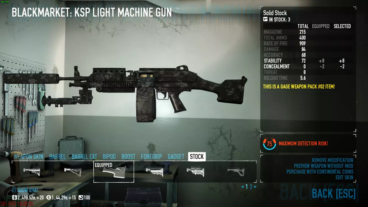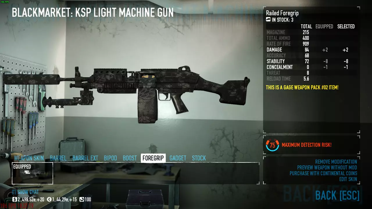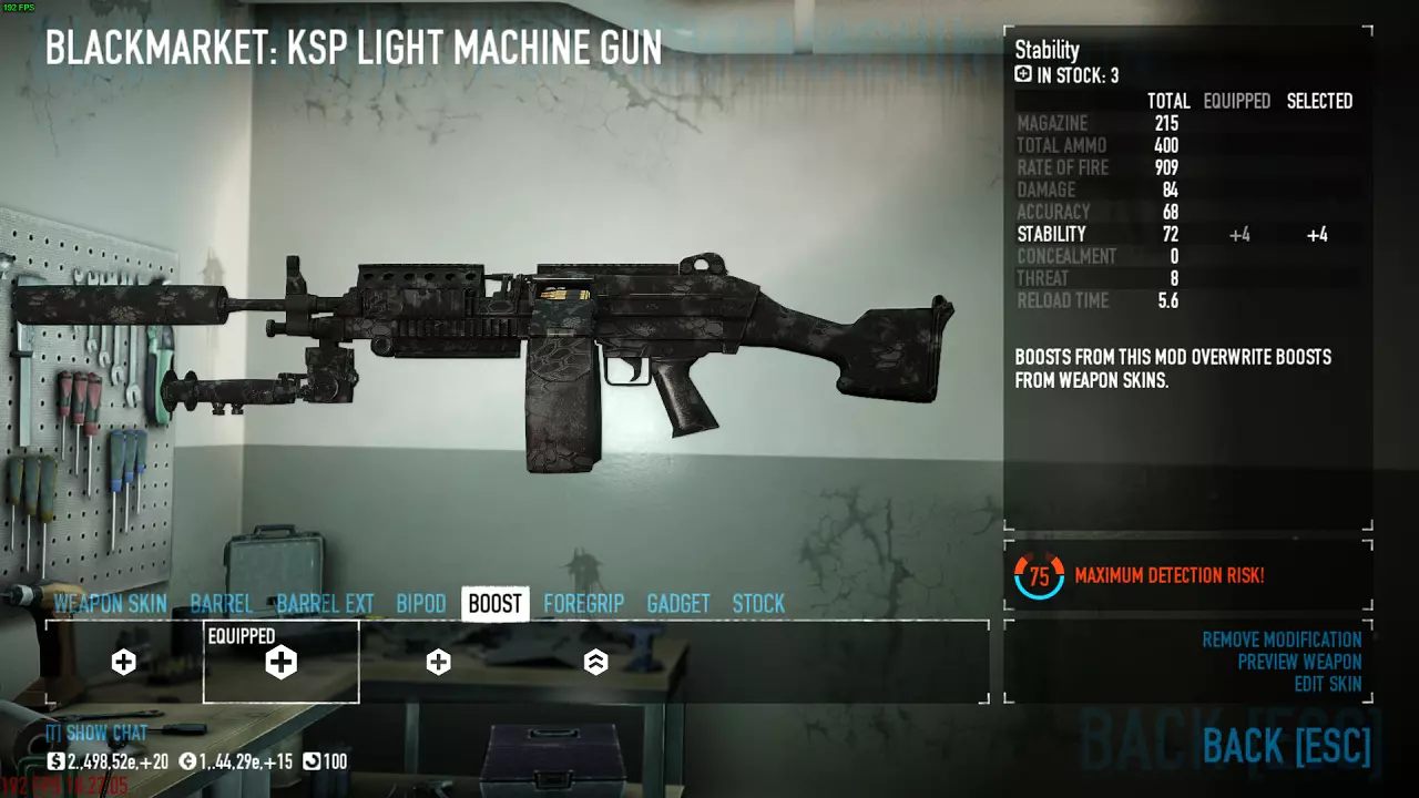 这套配装适用于所有难度。该配装分为两个版本,第一个是单人版,第二个是多人版。这些配装中没有钻探技能,但如果你想加点的话,建议从【劣势者】或【稳定射击】中分配一点到【硬件专家】技能上。两种配装均使用【改进型复合战术背心】和【坚忍】技能。 武器 主武器 我喜欢使用KSP轻机枪或M60轻机枪。 KSP轻机枪