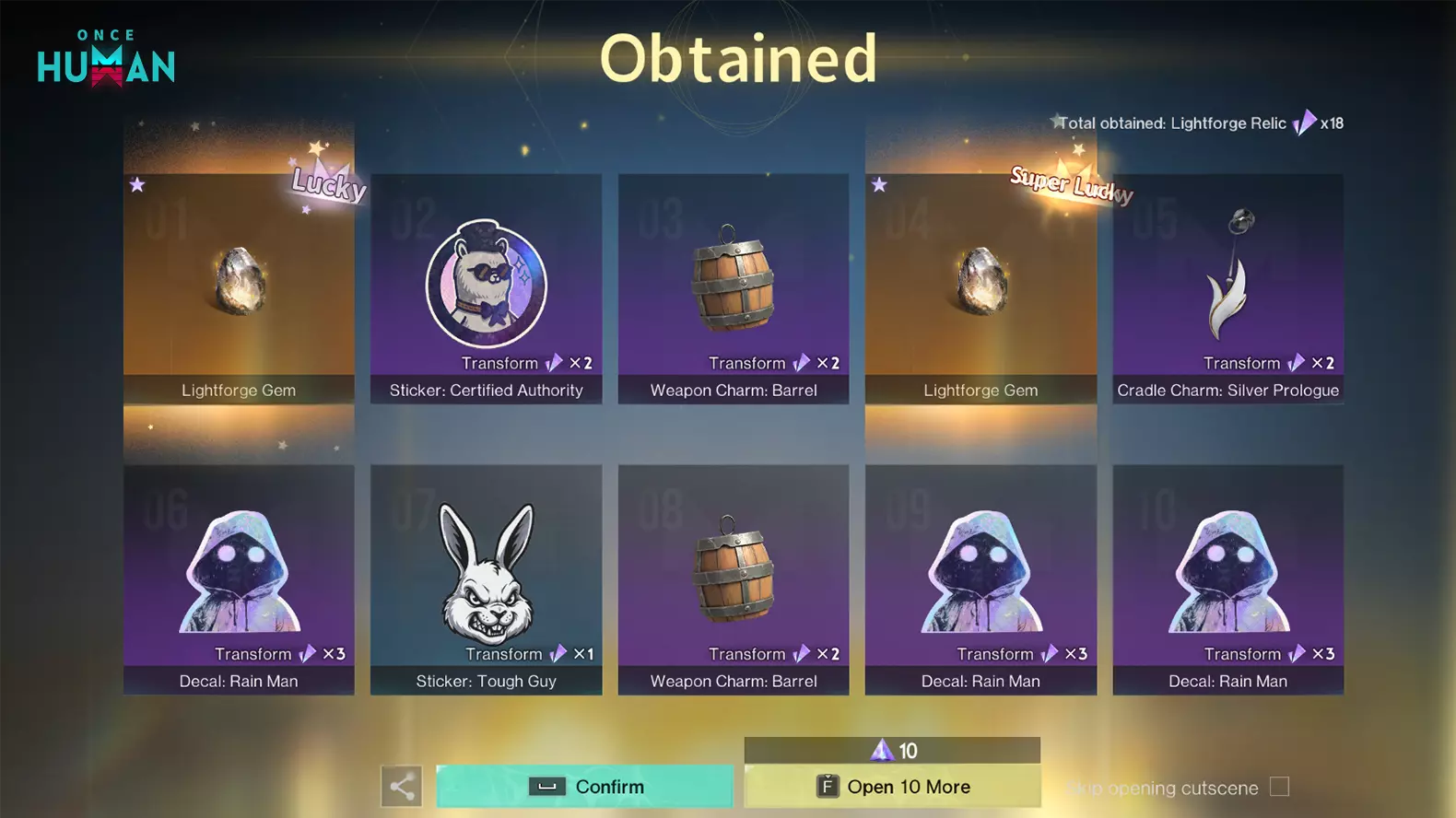 光铸战利品箱抽取展示优化 10月29日(太平洋时间)更新后,光铸战利品箱的抽取结果界面在视觉上进行了改进。现在结果将显示得更加清晰。请放心,此次优化仅影响视觉效果,不会改变任何实际抽取概率! 1. 改进了重复皮肤的显示效果。分解获得的光铸圣物将显示在抽取结果的右下角。获得的总量仍会显示在右上角,让你更容易看清实际获得的物品。 2. 当抽取到光铸收藏物品时,将出现【超级幸运】标签。抽取光铸宝石时:若在本回合的1-10次抽取中获得,会显示【超级幸运】;若在11-17次抽取中获得,会显示【幸运】。祝各位好运!