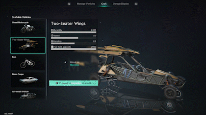 获取方式: 在PVE场景中:解锁相关【模因】以激活小型车库中的飞行载具。 在RaidZone模式服务器中:会随机出现指定交易区,可在此处购买飞行器。你也可以使用【记忆芯片】来制作飞行器。