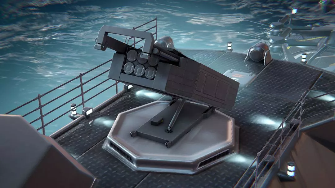 M国远程多管火箭炮。它能以高弹道、高抛物线飞行并造成范围伤害的速度有效打击水面和水下目标。