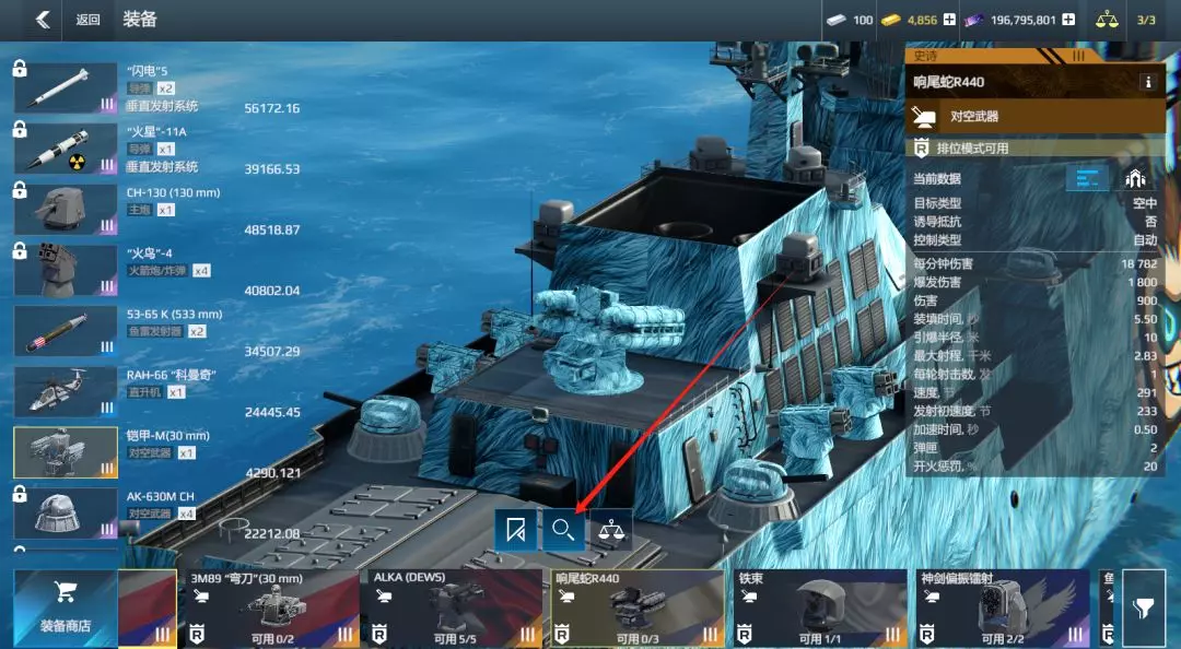 ②选择装备,点击放大镜图标,找到安装了该装备的舰艇,然后点击“替换”。搞定!
