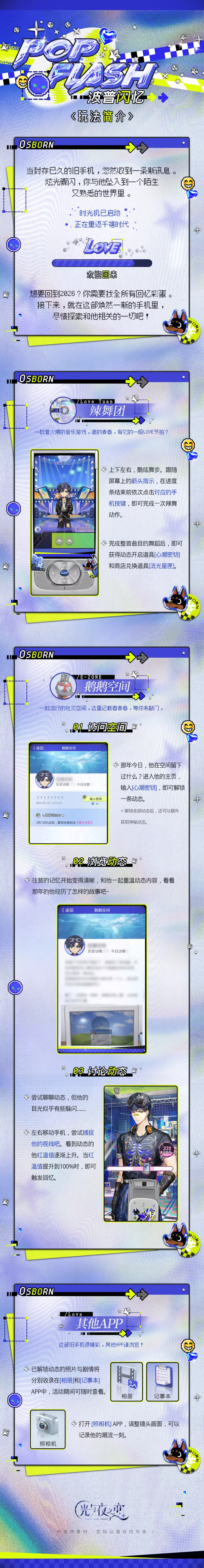 活动说明:与萧逸重返怀旧时代,拾回往昔记忆吧。参与活动即可体验专属剧情,获得活动限定[3星]灵犀 萧逸・暗夜霓梦、专属头像框、朋友圈封面等奖励。