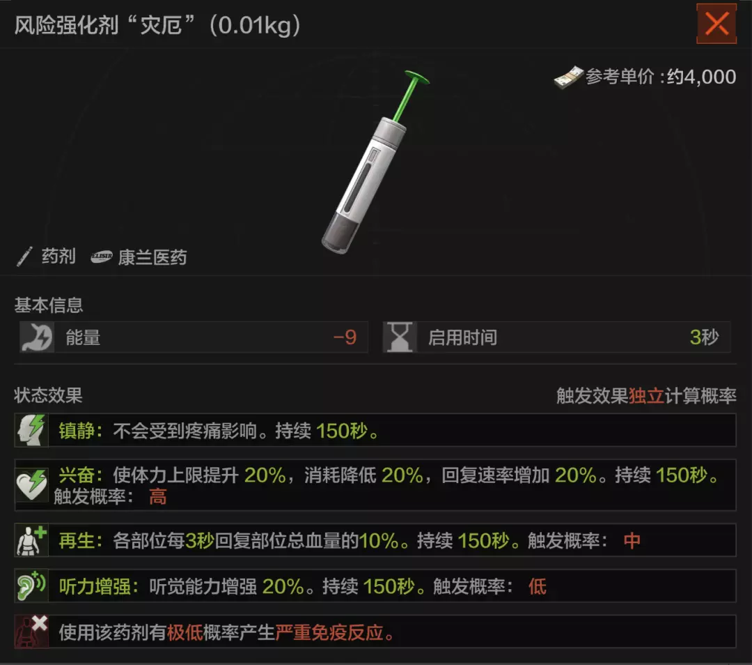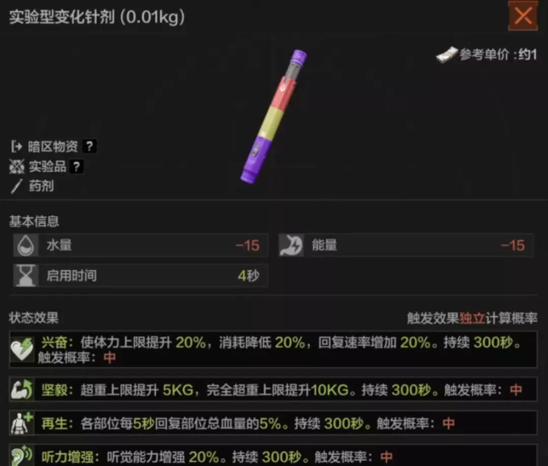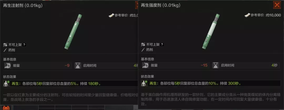 价格相对更昂贵的“强度剂”的持续时间与增益效果都比普通的“注射剂”更加强大,不过这些药剂的强大效果是有副作用的!