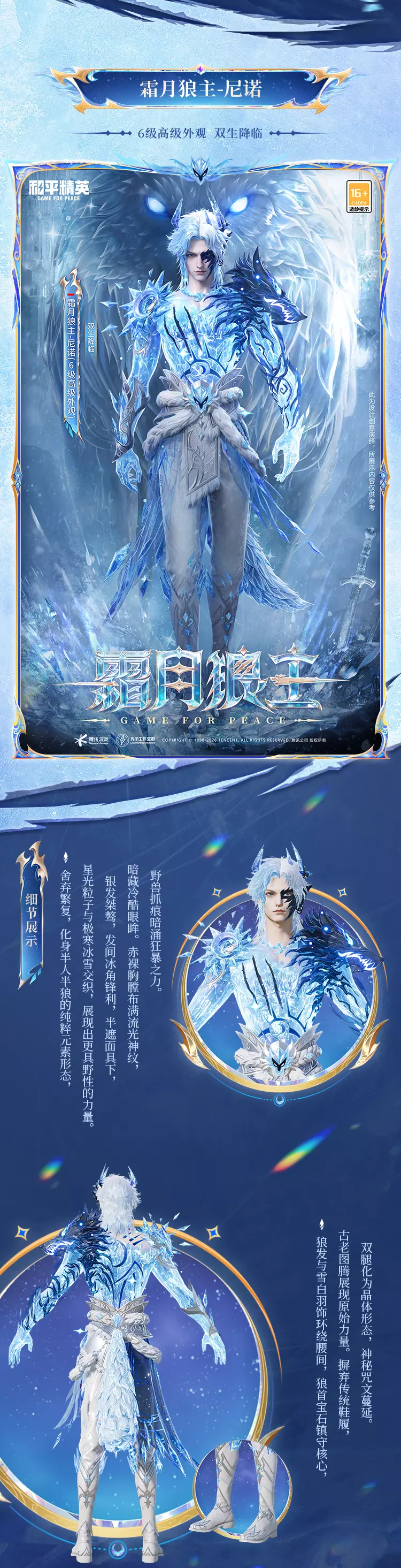 新皮肤爆料丨最新神装【霜月狼主-尼诺】细节爆料来袭!3月6日0点霜狼环侍,冠冕为主~