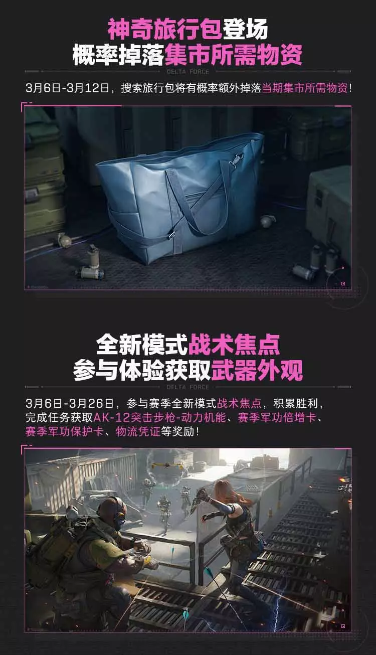 全新模式战术焦点,组队畅玩共享进度,一同获取武器外观!