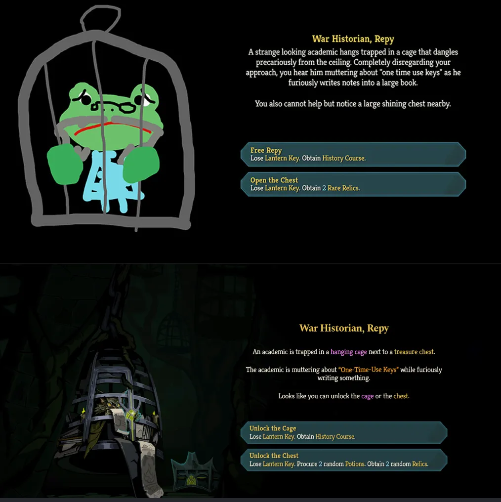 来点不太一样的:此前我们披露过的战史学家Repy的临时事件图也有了更新(事件的文本和选项也变了)!虽然原本的图片也有其自己的魅力,但还是让我们为beta版的Repy道一声安息吧,我们会记得你的。