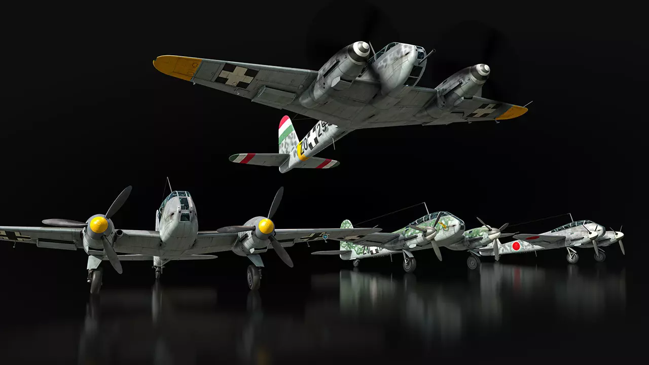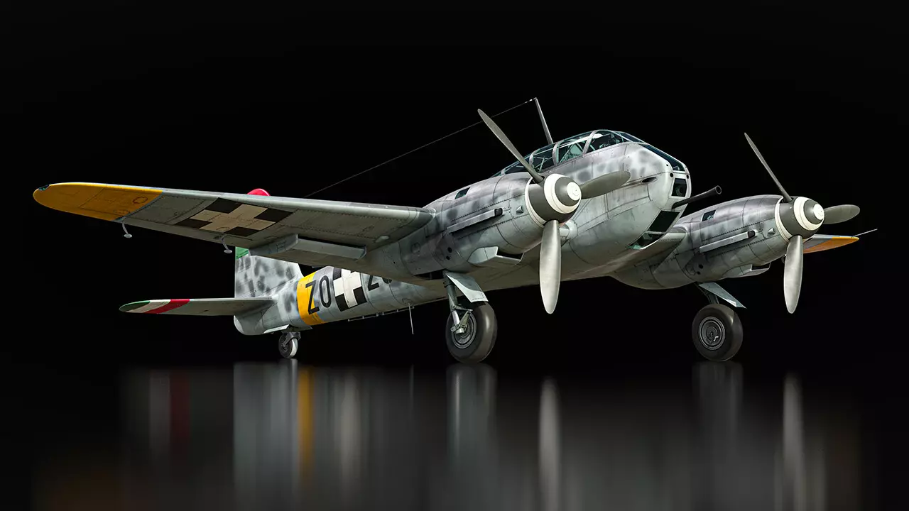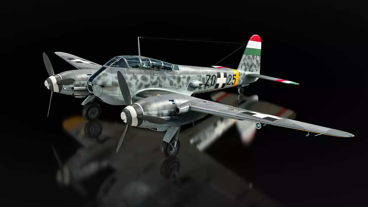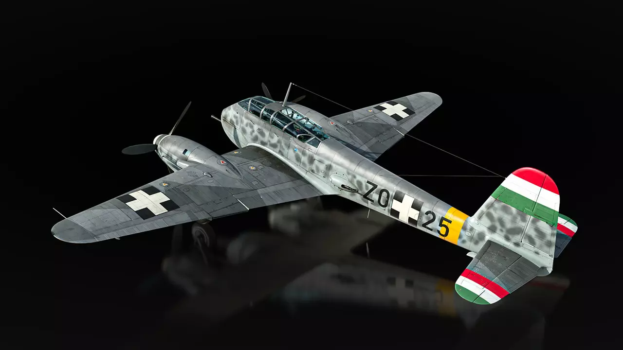 最后一个例子是Me 210 Ca-1 39M,这架飞机保留了20毫米机炮,但将7.92毫米机枪换成了一门备弹12发的40毫米博福斯机炮。它还可以在机翼下挂载六枚150毫米火箭弹。虽然这些武器原本是用于对抗盟军轰炸机的,但火箭弹仍能对轻型地面目标造成范围伤害,40毫米机炮也配备了穿甲弹链。 这些新型Me 210将成为陆战和空战的出色补充。它们强大的前向火力和高效的自卫机枪手使其在低级房中成为相当棘手的对手。不过,它们的飞行性能相对有限,加速和爬升率都较为平庸。Me 210 平台同样相当不稳定,尤其是在全控制模式下,并且受损后操控反应会变得很差。 你将很快能在《战争雷霆》的下一次重大更新中体验到这架“大黄蜂”战机!在此之前,请继续关注更多博客内容,我们稍后再见! 请注意,这些载具的性能参数可能会在实装前进行调整。