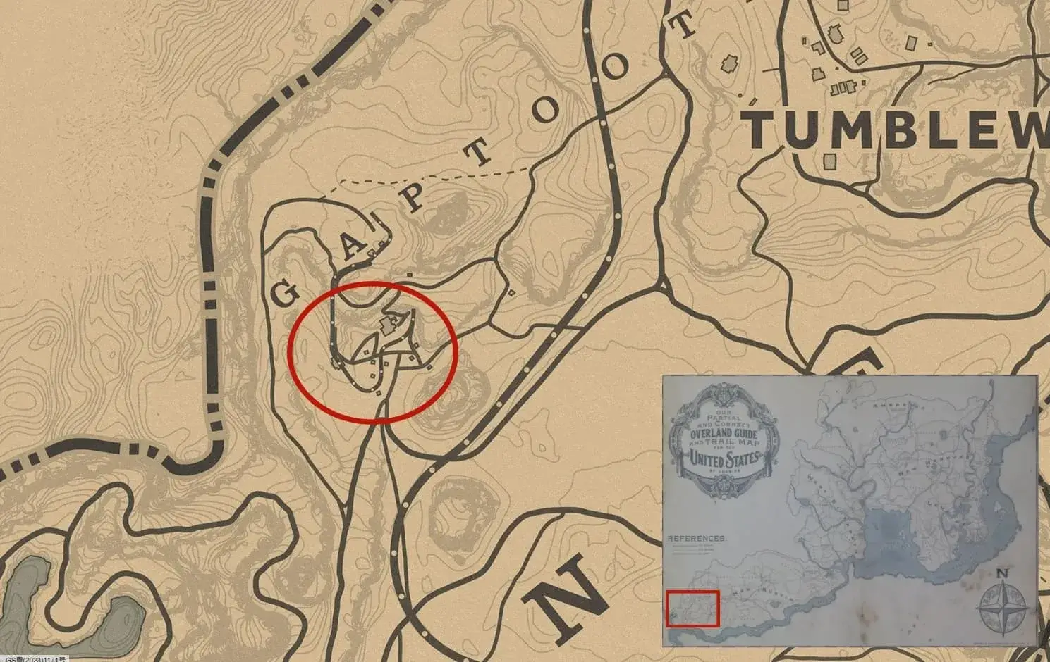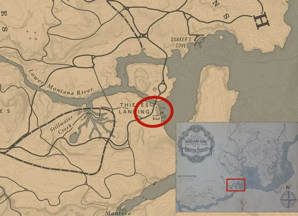 位于地图右下角靠近河流地图边缘,即:莱莫恩 (Lemoyne)正南部