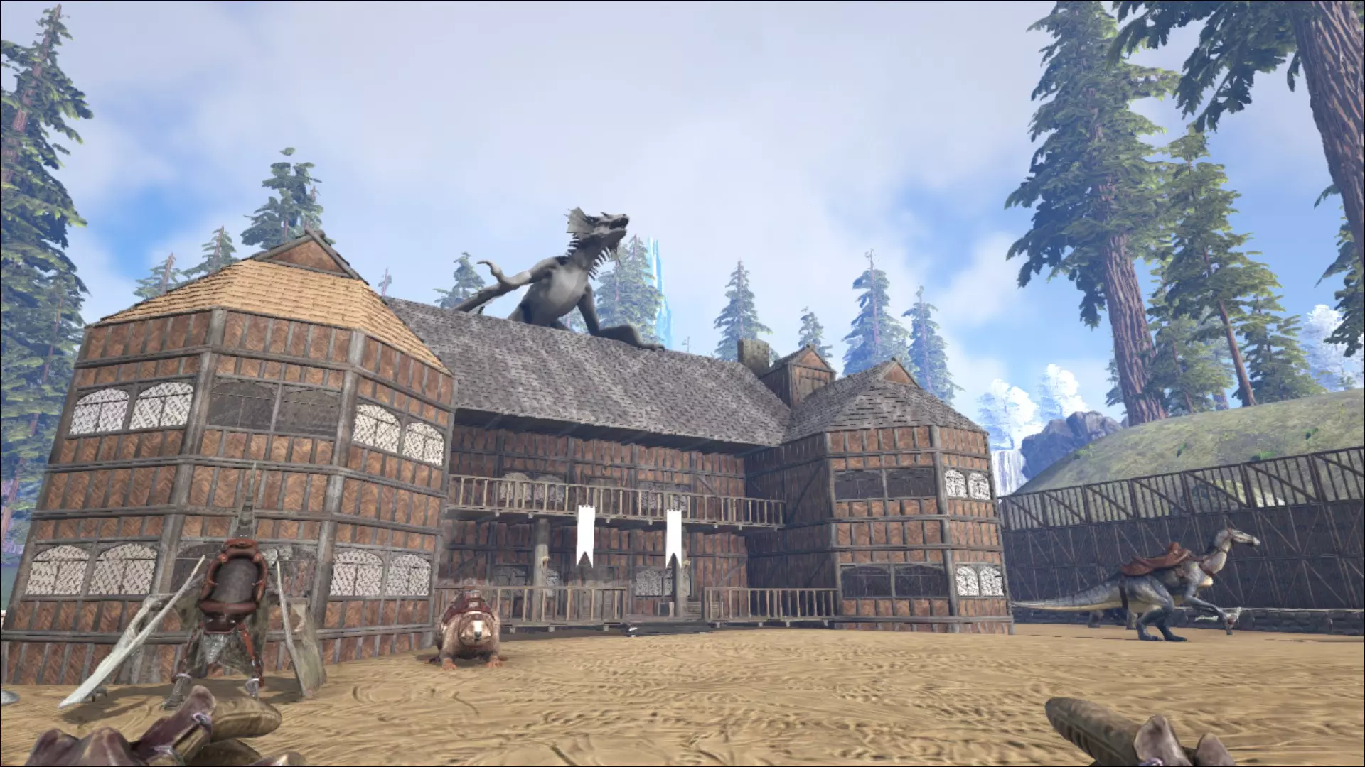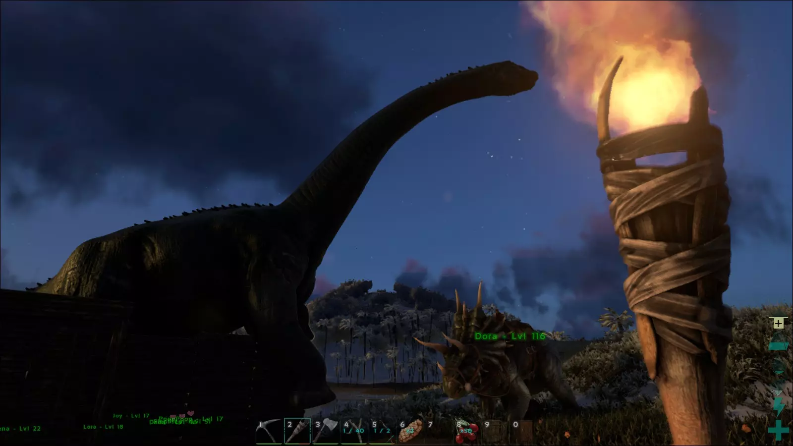 有些区域如果没有合适的生物确实很难征服,其中包括深海、天空以及陡峭的岩壁。为了能到达想去的地方,有一些特殊生物可供选择。不过,巨齿鲨虽然不算特别,但它足够灵活、防御力强,而且体型适中,能够进入水下洞穴。袋狮(一种大型野猫)擅长远距离跳跃,尤其能在树木和岩石上攀爬。而在洞穴中,古巨蜥是不错的选择。这种蜥蜴虽然速度不快,负重能力有限,跳跃能力几乎为零,但它能攀爬任何物体,甚至包括洞顶!另一个极端情况就是夜晚本身。夜晚真的非常非常黑暗。为了在黑暗中带来一些光亮,一种食肉动物很合适,它白天大多睡觉,和大多数玩家类似,但晚上却非常活跃。如果有人想去高空,应该仔细看看巨型鹰阿根廷巨鹰。它能携带很多东西,续航能力强,速度也还不错,而且也适合战斗。在沙漠中,建议带上一只史前骆驼。虽然它在外观上与我们如今所说的骆驼或单峰驼相去甚远,但它同样能在驼峰中储存水分,这在酷热环境下是一个相当不错的特性。