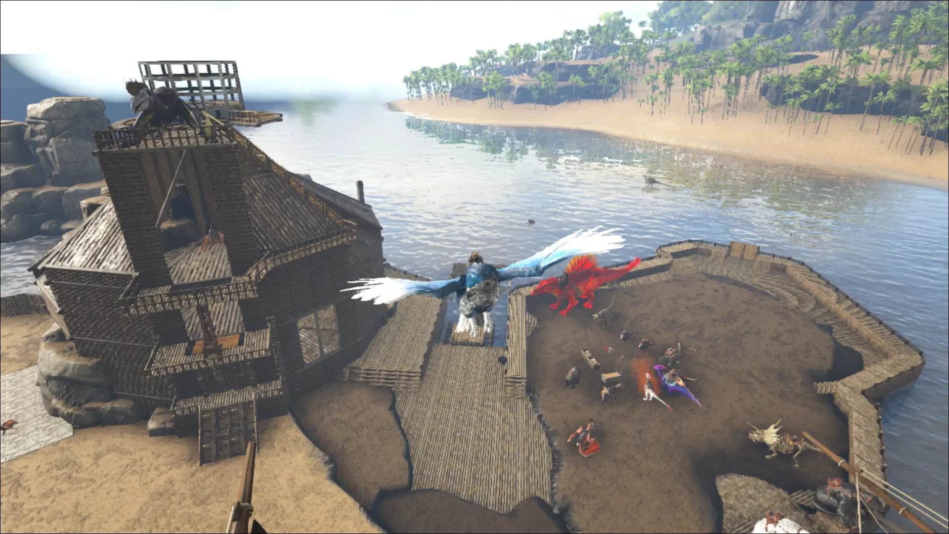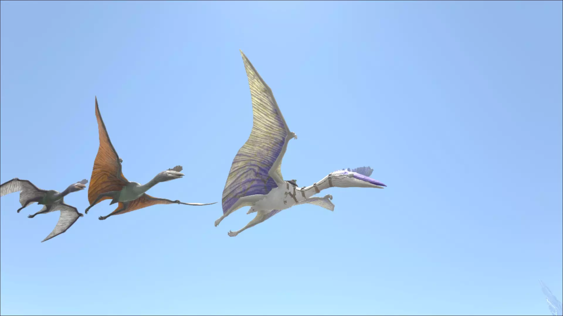 那么谁会吃昆虫呢(除了在《方舟:生存进化》里,这里情况大多相反)?没错,是鸟类。通常来说,鸟类都长有羽毛(比如可骑乘的巨型鹰、小型秃鹫,或是鸟类的祖先始祖鸟,以及其他动物),不过我们也把翼龙算在内。有趣的是,长有羽毛的飞行动物可能会变得危险,因为它们具有攻击性。而翼膜类飞行动物(除了巨型蝙蝠)则相对温顺。即便是体型庞大的风神翼龙——我们说的是体型堪比大型飞机的那种——它也只是一种纯粹的逃跑型动物,但同时也是最受欢迎的可驯服生物之一。因为它飞得非常高,而且从不(说真的:从不!但要接近他也并非那么容易。