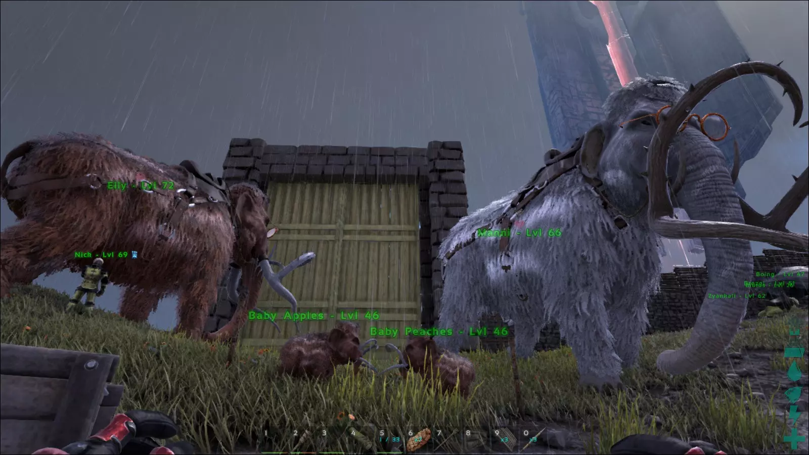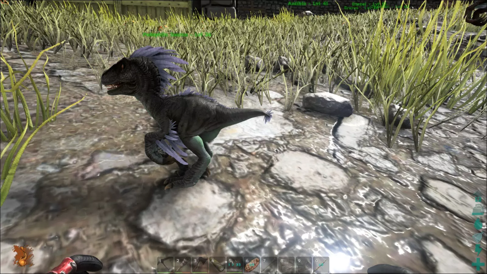 在《方舟:生存进化》的繁殖系统中,这意味着许多幼崽未必能继承或展现出你期望的合适属性。而这正是让我无法专业培育生物的原因——即便近亲繁殖在某种程度上很刺激……呃……算了。那么,对于那些不符合自己期望的可爱小动物宝宝,该怎么处理呢?没错!屠宰。理想情况下,你会把幼崽的肉喂给它们的兄弟姐妹和其他亲属,给这整个变态行为再添上一笔!杀死幼崽、展现冷酷、同类相食和近亲繁殖。抱歉,但这实在不是我的世界。因此,我几乎从不进行繁殖。如果真的发生了,那我会留下这些幼崽——不管它们是好是坏……