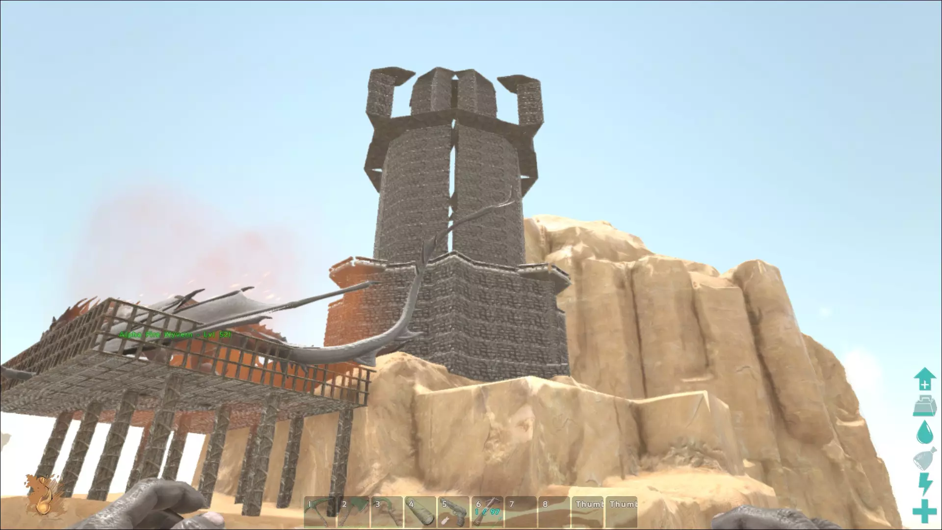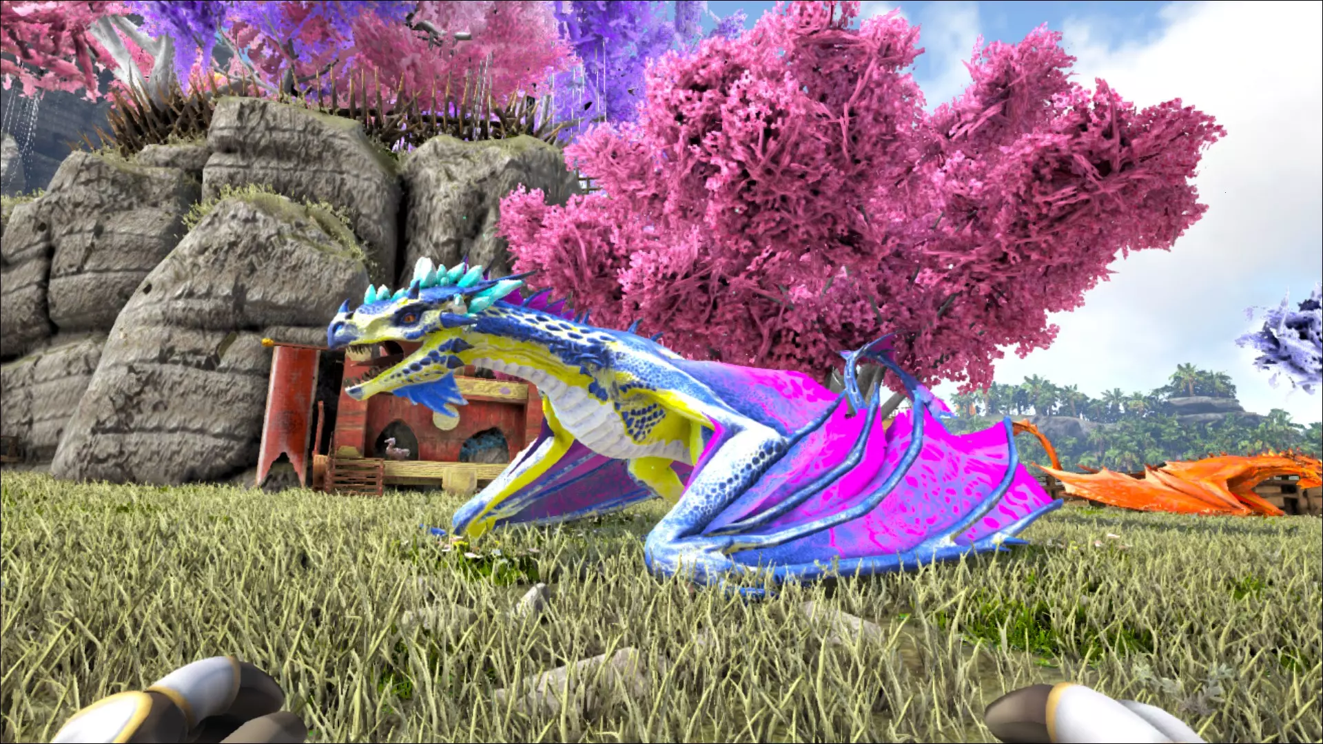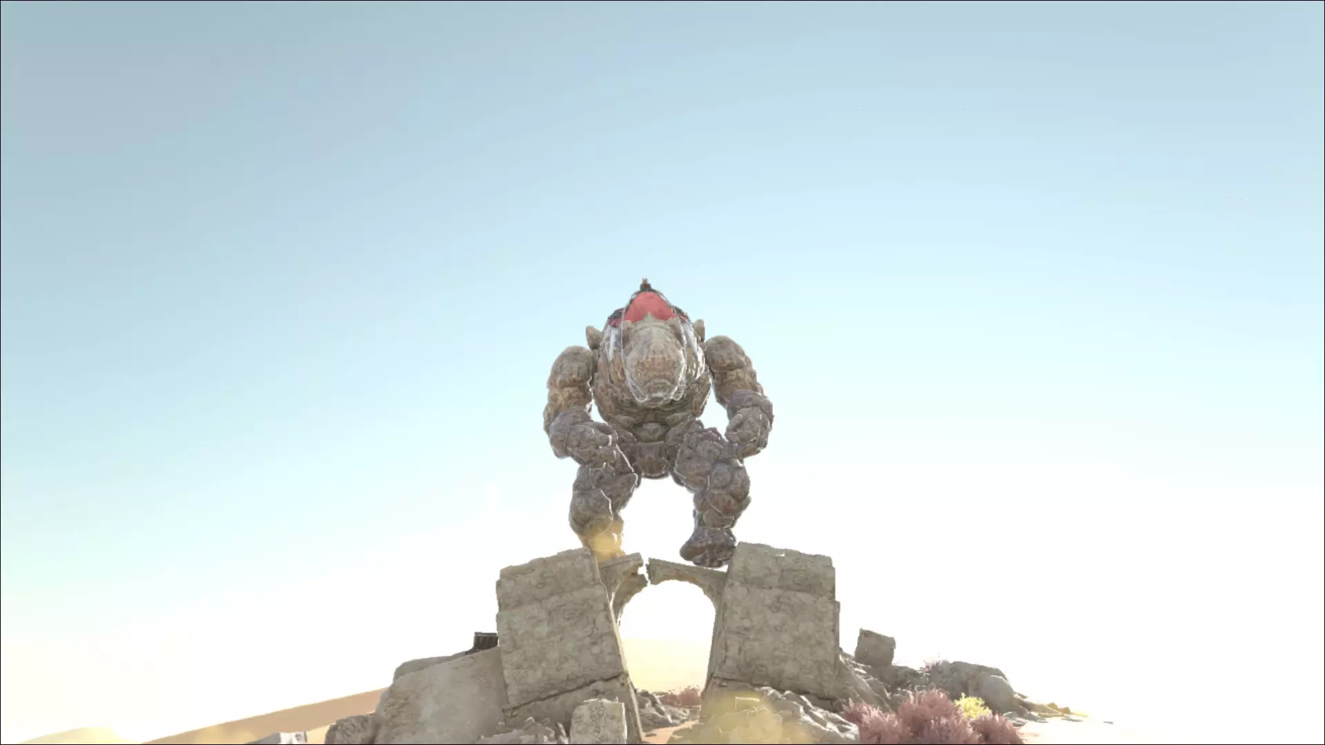 可以看出,《方舟:生存进化》在生物种类方面设置得相当多样化。但这对开发者来说似乎还不够。此前游戏中更多是基于现实生物,而随着付费DLC“焦土”的推出,情况发生了根本变化:沙漠中突然出现了石魔像等神话生物。这些大块头相当OP(过于强力),新手几乎(甚至完全)无法对抗它们。更糟的是,它们还能伪装成石头,经常从背后发动袭击。此外,它们投掷岩石的能力也很容易让玩家早早“数沙粒”(指死亡)。不过一旦驯服了一只,那就没什么好怕的了。魔像(Golems)常被用于狩猎,因为有两种“生物”会主动攻击这种巨像。它们就是死亡蠕虫(Deathworm)——一种巨大的沙中昆虫,以及传说中的双足飞龙(Wyvern)——一种龙类。双足飞龙有四种类型:毒、火、电以及(现在新增的)冰。关于这些龙的问题在于,它们和死亡蠕虫一样无法被驯服。但与死亡蠕虫不同的是,双足飞龙至少可以被繁殖——前提是你能活着找到它们的蛋,并且还有足够的勇气去猎杀母龙,夺取它们的乳汁来喂养自己的“宝宝”。一切都没那么简单。 这里当然不能忘了独角兽。通常情况下,如果不进行干预,每张地图会生成1只独角兽。可以说是最后的独角兽,但没有邪恶的巫师或愤怒的红牛。不过,这种《方舟:生存进化》中最稀有的生物(除了某些服务器上的玩家)出现的概率相对较低。它其实也没什么实际作用,但不知怎的,它就是必入手的生物。可惜的是,它(目前)还不能染色。所以,那些希望得到一只粉色毛茸茸独角兽的人,目前还是会失望的。