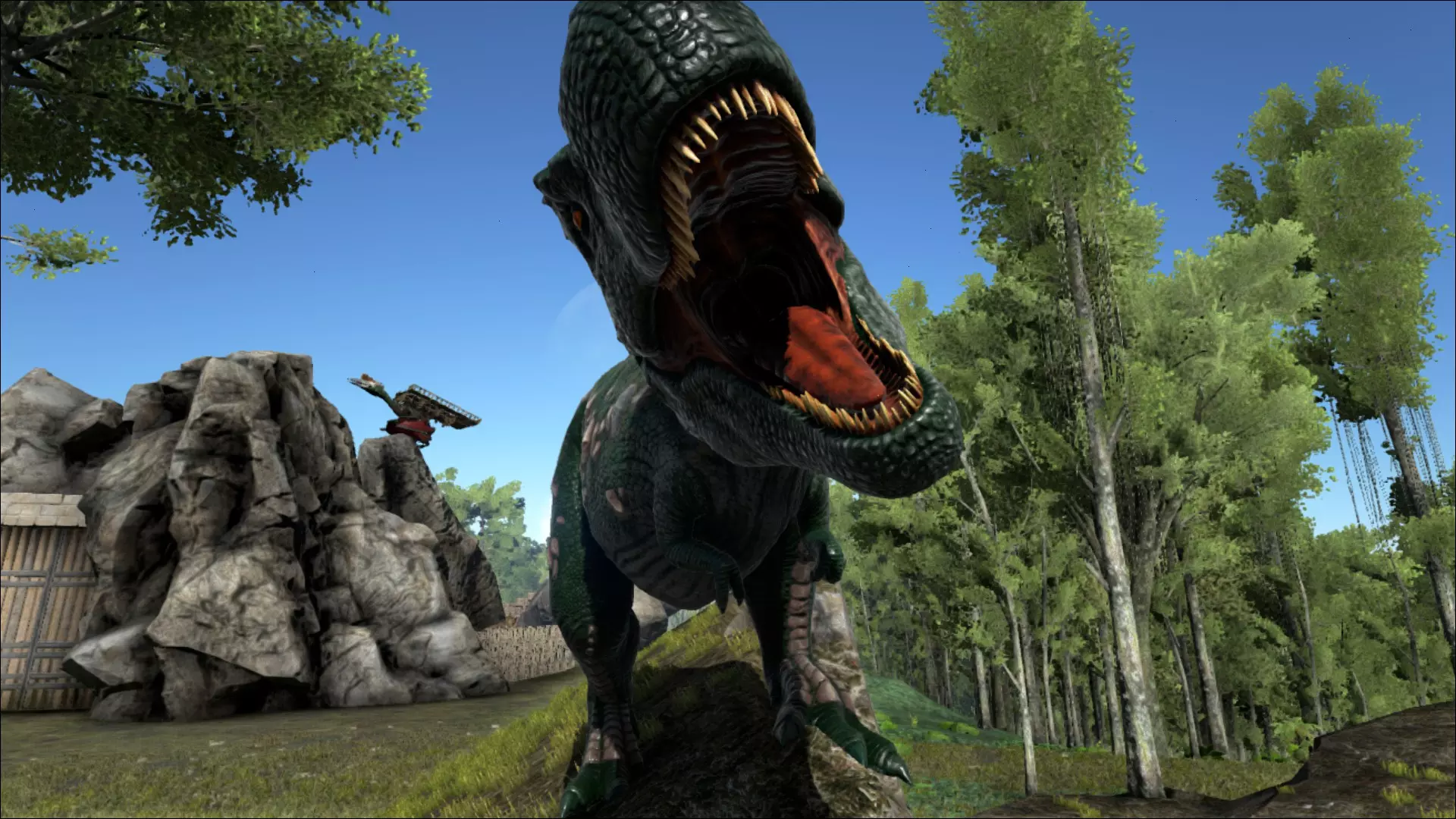 市场上的生存游戏数量众多。在大多数情况下,这些游戏的背景设定在世界末日后的世界——一场严重的灾难使得大部分地区变得不适宜居住,人口也大幅减少。这类游戏通常还伴随着与僵尸和其他变异生物的战斗。这些大多风格相当阴暗的作品虽然和《方舟:生存进化》一样具有挑战性,但却缺乏积极向上的氛围,而且由于同类游戏数量众多,也并不显得特别独特。 《方舟:生存进化》走了一条相似但又截然不同的道路。游戏中也存在关于过去可怕事件的线索,但这些线索在游戏玩法中并不十分明显。这只是一段背景故事,感兴趣的玩家可以通过收集所谓的探索笔记来拼凑完整。不过《方舟:生存进化》几乎不会让玩家去思考可能存在的过去。相反,玩家必须思考未来,思考自己的未来,而且是刻不容缓! 《方舟:生存进化》里没有僵尸,这倒是挺好的。但游戏中有些生物,你看到它们时会希望这里有僵尸。因为和这个世界里四处游荡的东西相比,僵尸……嗯,这么说吧,僵尸就像是小巧、可爱、毛茸茸的小鸭子。但究竟是什么东西如此令人恐惧,竟让那些渴望吞食大脑、变异扭曲的人类复生者突然变得像天线宝宝一样呢? 恐龙