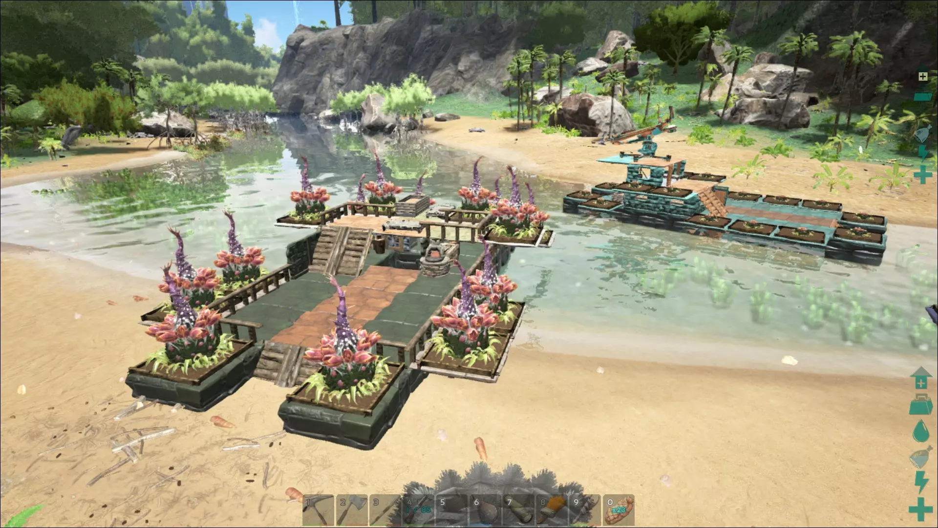 度假?算是吧。就像开着房车一样,带着全部家当从一个美丽的地方辗转到另一个地方,在每个地方待到想离开为止。你可能会觉得,不停地搭建和拆除房屋,频繁地整理和收拾营地,实在是太麻烦了。如果这么做的话,确实如此。但其实不必如此。因为有少数恐龙,除了普通鞍具外,还可以安装平台鞍。两者的区别在于,你可以在这些平台上建造。所以,你可以打造一个移动基地,而不是固定的基地,然后开着它环游世界。平台生物包括: - 扑热息痛(药店的践踏生物) - 雷龙 - 蛇颈龙 - 沧龙 - 风神翼龙 - 泰坦巨龙 建造系统