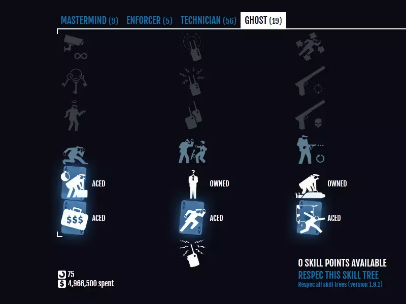 有了这些技能点,你已经为成为一名出色的幽灵搭建了很棒的基础。不过我们还没完成,还需要在其他职业中设置技能,别担心,这部分内容不多。