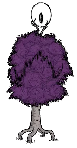 桦木树人 桦木树人(Birchnut Treeguard)是《巨人的统治》DLC中新增的怪物,由桦树生成。 桦木树人与普通树人有很大区别: 它仍然是树木,这意味着它不会移动,击败它的方式有两种:用斧头砍倒,或用火烧毁。 它会用从地下伸出的根须状触手攻击玩家。 会召唤1-5个桦木树人帮手。它们单独行动时相当弱小,但成群结队时就会构成严重威胁。 如果在它旁边种上七叶树(通常一棵就够了),它不会像冷杉树人那样平静下来,而是会变成普通的桦树。 杀死这个树人后,会掉落活木,还有几率掉落恐怖燃料和七叶树果实。挖掘剩下的树桩会额外获得一块活木。