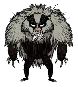熊獾(Bearger)是《巨人的统治》DLC中加入的秋季巨型 Boss。当它出现时,会开始吃掉周围的一切,并将所有箱子和冰箱里的物品扔出来。 熊獾会吃掉所有被扔出来的食物,这让玩家在它忙着吃储备食物时有时间进行攻击。它的优先目标是蜂蜜:会破坏蜂巢并吃掉蜂蜜。吃掉10单位蜂蜜后会入睡。 它有两种攻击方式。在其中一种攻击中,熊会用前爪拍打地面,导致附近所有树木和建筑倒塌;在此次攻击中,玩家会掉落武器。另一种攻击时, Boss 会用后腿站立,并用前爪进行攻击。如果玩家逃离它,它会开始追击玩家,摧毁沿途的一切。 击杀这只熊后,会掉落 8 单位的肉和一张厚皮。
