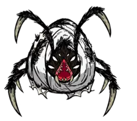 蜘蛛女王 蜘蛛女王是游戏中第二个添加的Boss怪物(第一个是树人)。当玩家靠近时,3级茧会孵化出蜘蛛女王。 如果2.5个屏幕范围内的蜘蛛女王或巢穴数量少于4个,3级茧孵化后会变成1级茧;如果数量多于4个,3级茧会直接孵化成蜘蛛女王,且不会留下任何东西。因此,蜘蛛生物群落的居住密度是有限的。 女王每20秒会生成蜘蛛和蜘蛛战士(在【饥荒:联机版】中为每10秒)。“随从”的最大蜘蛛数量为16只。如果女王有很多追随者,那么不装备蜘蛛帽就很难杀死她。 如果不去招惹女王,几天后她会变成一级茧。