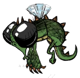 毒菌蟾蜍(Toadstool) 毒菌蟾蜍(Toadstool)是“Warts and All”更新中新增的 Boss。 召唤该怪物的方法是:在洞穴中找到被几个池塘环绕的紫色蘑菇,并用斧头击打它数次。拥有四种攻击方式:喷出爆炸蘑菇的孢子,这些孢子会在几秒后生长并爆炸;原地跳跃,释放冲击波;向角色头部喷出有毒气体孢子,这些孢子会在3.5秒后爆炸。毒气云造成20点伤害,并加速背包中食物和易腐物品的腐烂。此外,它还能在自身周围生长孢子蘑菇。它们燃烧后会在周围留下相同的核心。 青蛙背部的蘑菇张开得越大,青蛙的伤害、攻击速度、移动速度和物理伤害减免就会越高(同时青蛙受到的伤害会降低),随着时间推移,蘑菇会变大,上面的斑点也会消失。 战斗时会掉落2个蘑菇外壳。死亡后会留下1张皮、1个随机颜色的蘑菇帽独特图纸以及两种蘑菇灯类型之一的图纸。 如果在战斗中频繁遭受昏睡和冰冻效果,将获得对这两种效果的免疫。