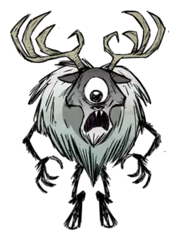 独眼巨鹿(Deerclops)是一个有一定概率在冬末出现的 Boss。 开始时会听到持续几分钟的可怕嘶嘶声。它的脚步声会使地面震动。它会来到你的营地并开始摧毁一切。能够越过任何低于第二层的墙壁。对玩家造成75点伤害,对怪物造成150点伤害。它出现后,冬天将在几天内结束。它会进行范围攻击,能够一次性消灭你为它准备的整群蜜蜂。需要补充的是,独眼巨人鹿的范围攻击可以冻结玩家或人工智能。