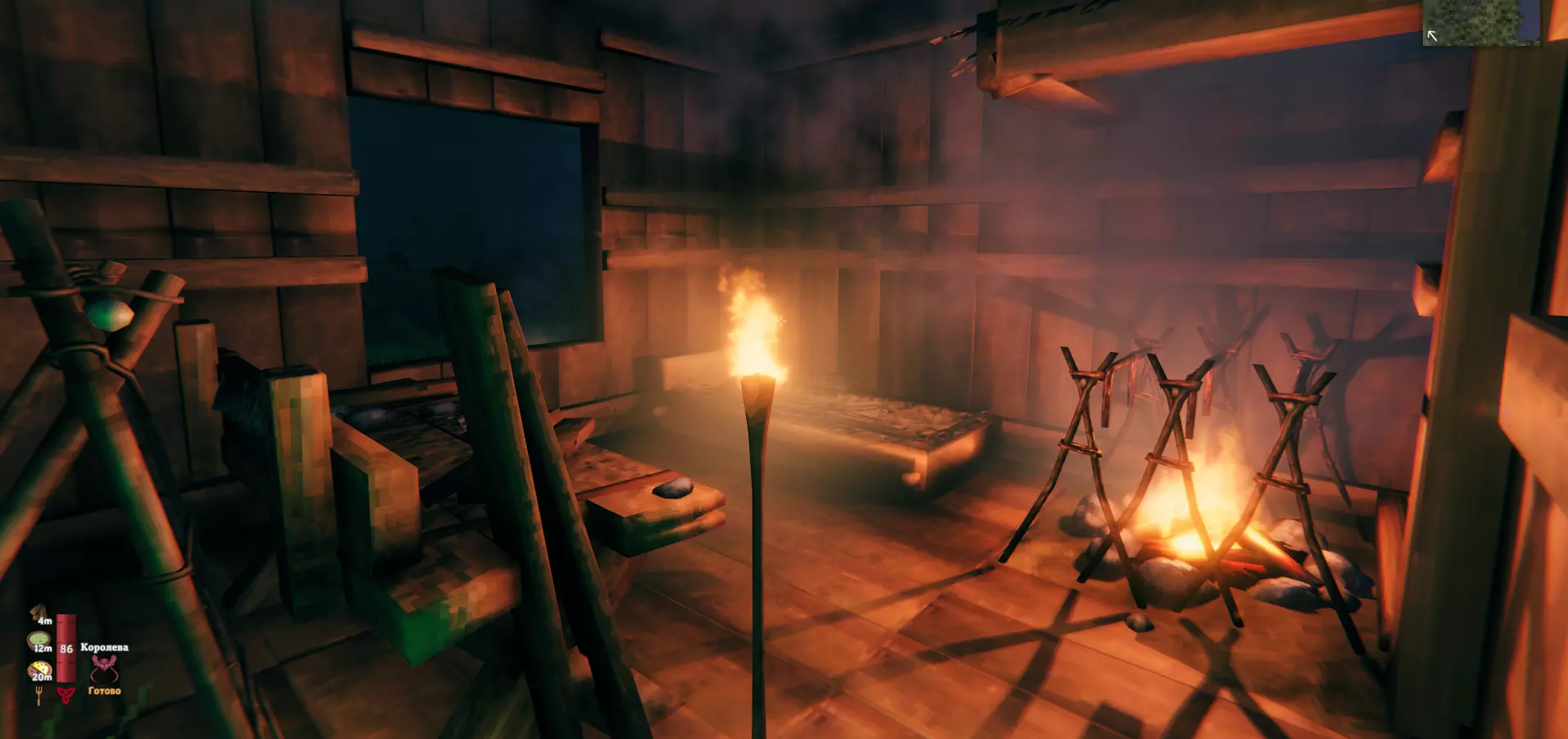 既然我们聊到了烤肉,那就该说说怎么做。你需要先搭个篝火,然后在篝火上放置烹饪架。你可以把肉挂在烹饪架上烤。野猪肉和鹿肉烤得很快,所以在烤制的时候我不建议走远。如果你忘了肉,架子上就只剩下木炭了。