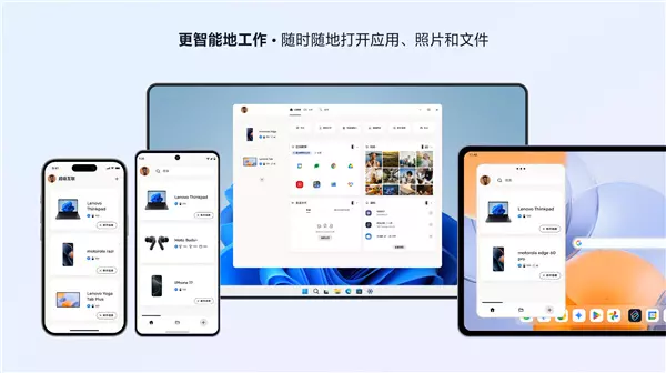跨端文件管理模块支持批量操作与智能分类,用户可在电脑端直接编辑手机文档, 5GHz Wi-Fi环境下2GB文件传输仅需12秒,较传统蓝牙传输提速20倍,且支持断点续存,大文件传输无需担心中断。 针对iOS设备,联想还开发了专属适配功能,iPhone用户可在电脑端实时接收、回复短信,直接浏览并管理相册。