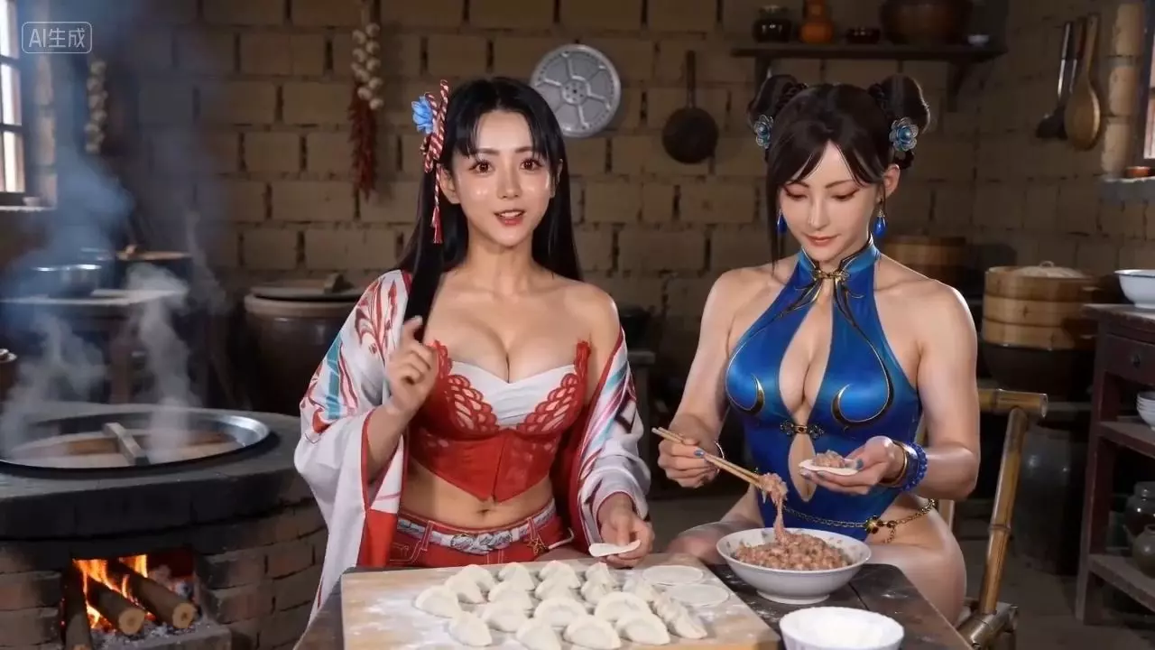 【seedance2.0】春丽和不知火舞一起包饺子,玛丽罗斯烧火