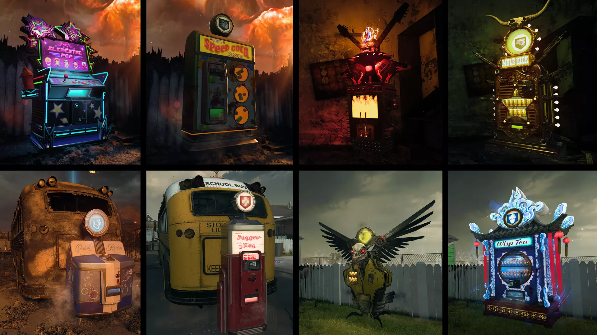时间弯曲的考验甚至延伸到你在悖论枢纽遇到的 perk 机器。在每场比赛开始时,除了快速复活(Quick Revive)外, nuketown 过去和未来版本中每个预设的机器位置都会随机生成一台机器。找不到 perk 机器?那就寻找奇迹之泉(Der Wunderfizz)来获取全部选择! 悖论枢纽:新主线任务、任务奖励和挑战