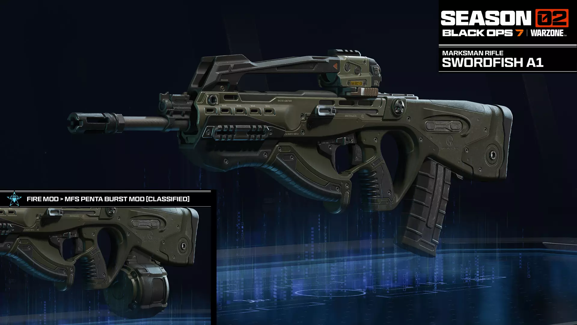 等级:39 弹匣数量:3 弹匣容量:30 精通徽章:有 配件:瞄准镜、枪口、枪管、下挂、弹匣、后握把、枪托、激光、射击模式 自定义选项:皮肤、迷彩和准星解锁(CM、MP、ZM、WZ)、饰品(1个)、贴花(1个)、贴纸(3个) 四发点射精准步枪。循环射速快且后坐力小,但机动性和操控性较慢。 使用剑鱼A1精准步枪进行四发点射攻击,该武器在其类别中提供无与伦比的精准度。命中所有四发子弹可造成高额伤害,解锁武器的五发点射声望配件后,每次点射可额外增加一发子弹。使用武器工匠打造具有快速操控特性的剑鱼A1,以便近距离作战;或者选择精准度和射程,应对大型区域的战斗。 声望配件 火力模组>MFS五连发点射模组