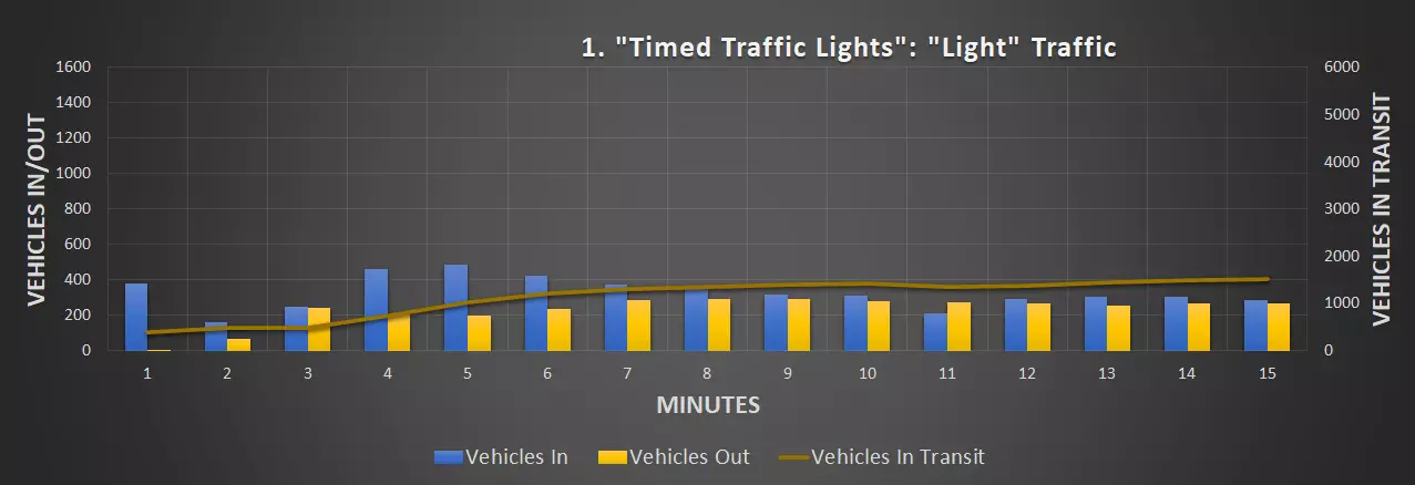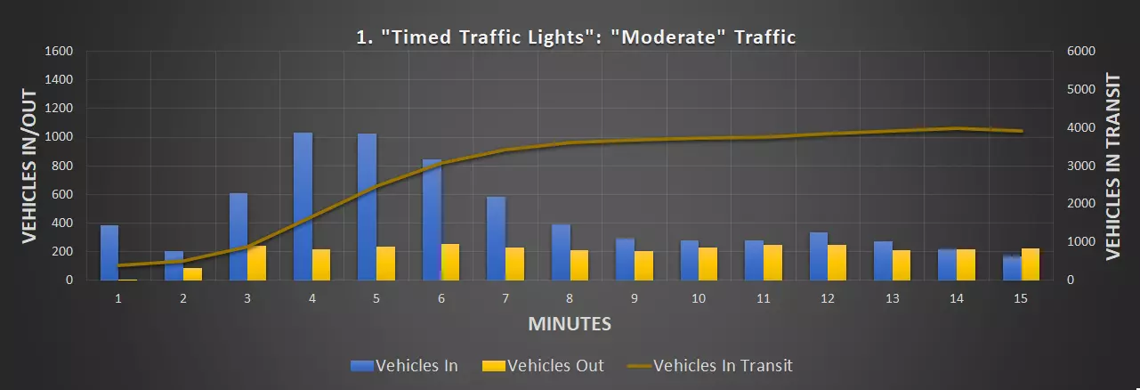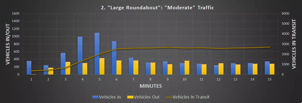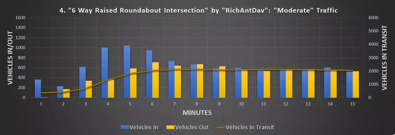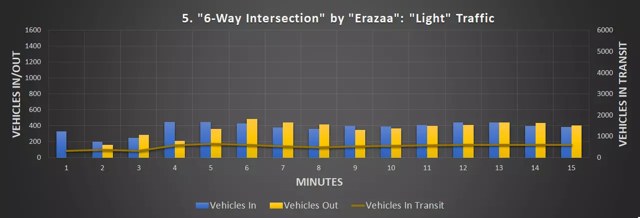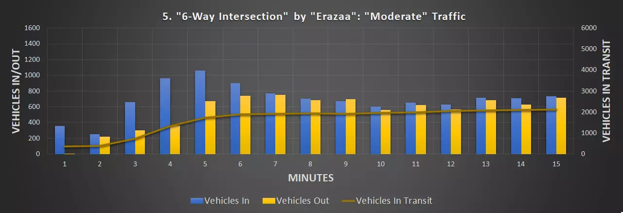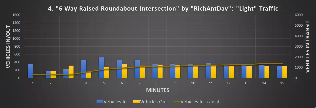 视频:0:09 尺寸:20×20 成本:4800 等级:1 道路:6车道城市道路 峰值每分钟车辆数:351辆/分钟(轻度交通),430辆/分钟(中度交通)